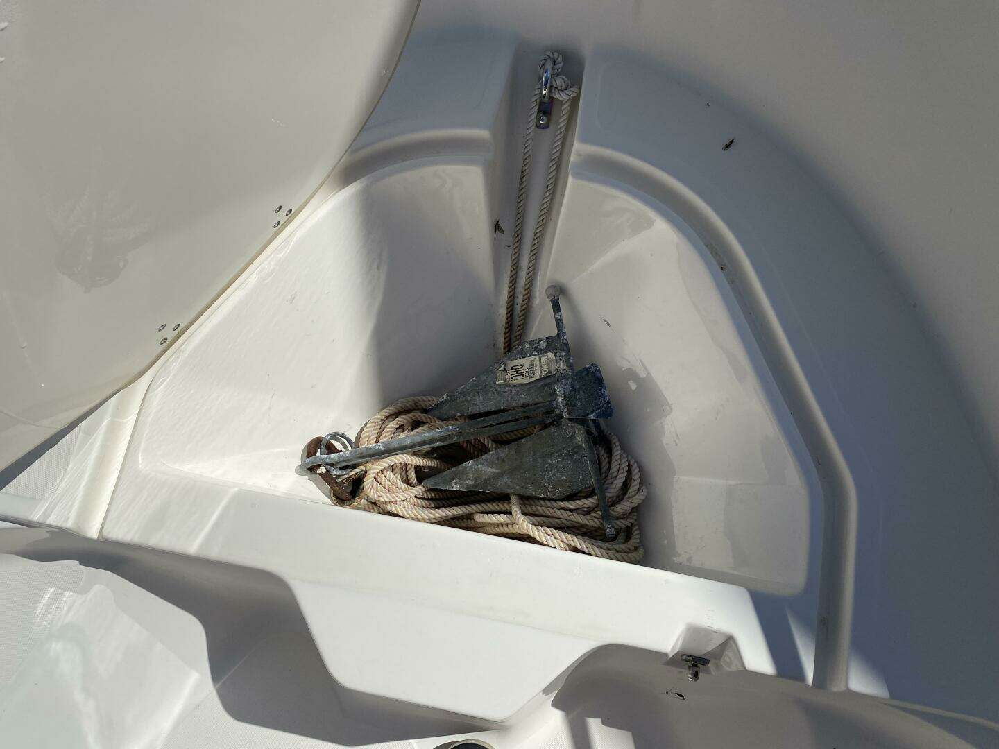 - Bow anchor locker with overboard drain