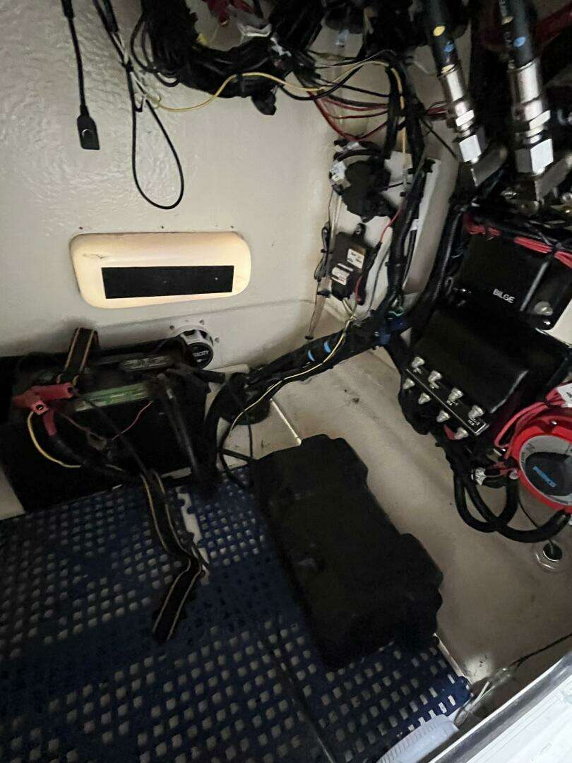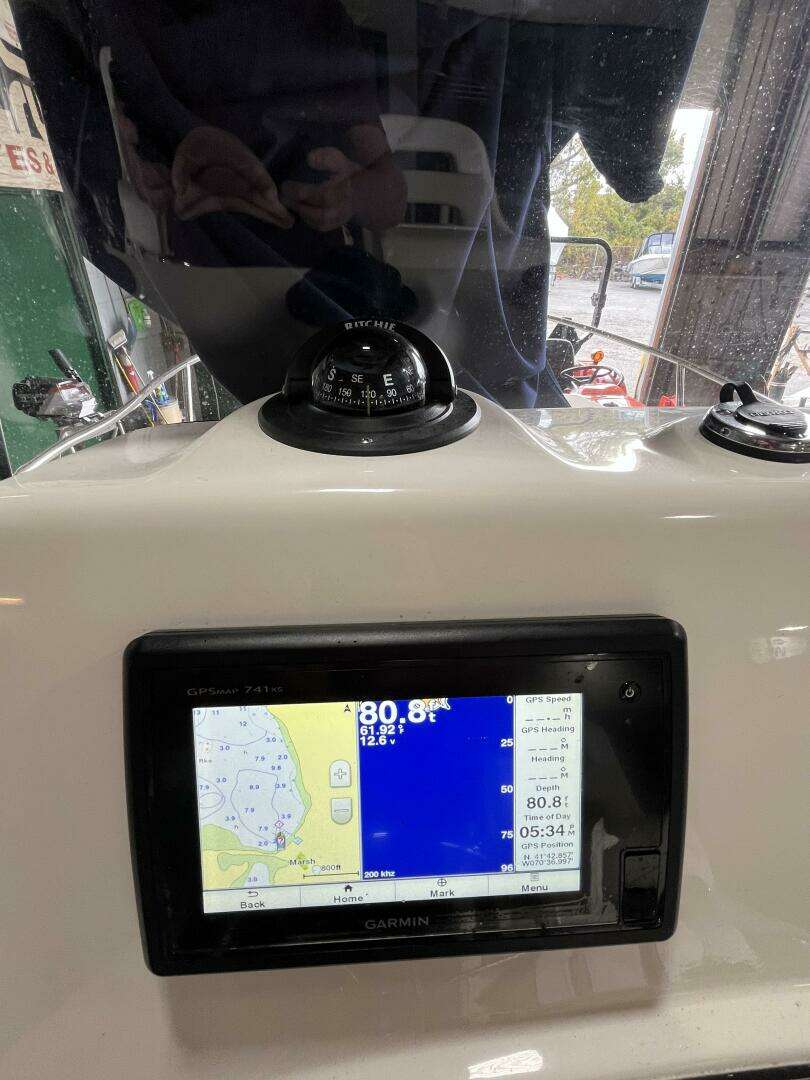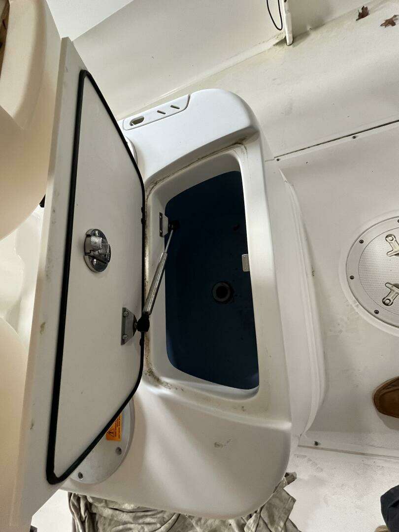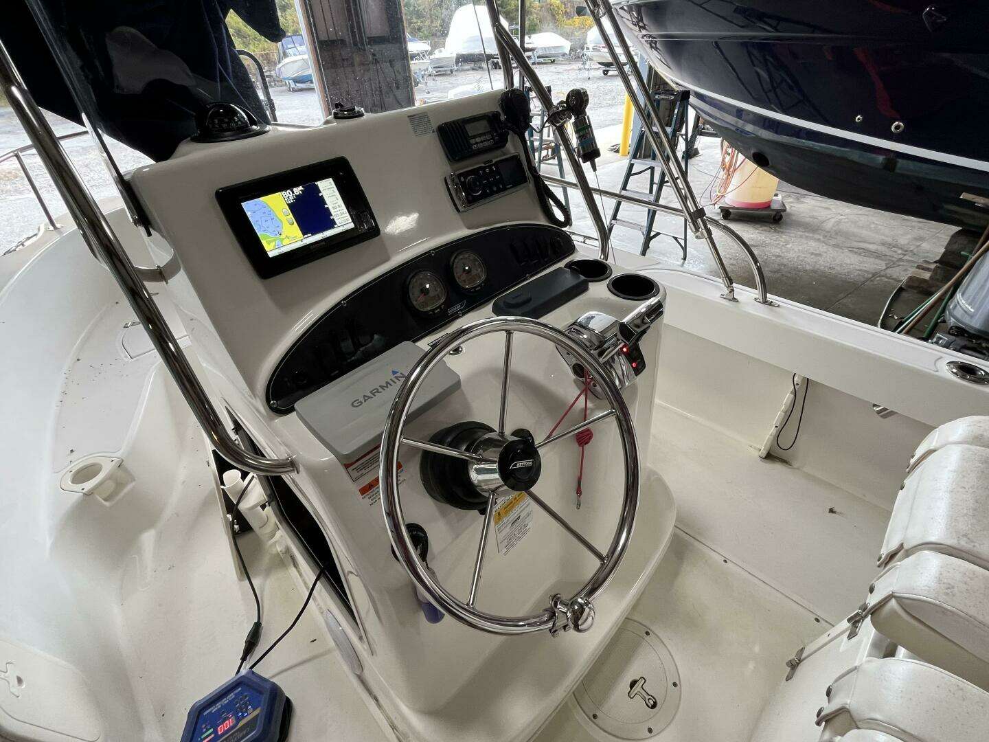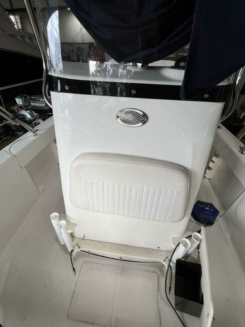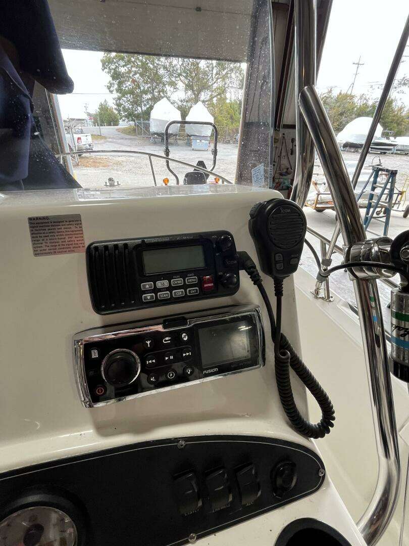 Well-equipped, she features a Garmin 741XS GPS/SONAR, I-com M412 VHF radio, Fusion MS-AV700 stereo system, and Mercury SmartCraft instrumentation. Comfort and convenience come standard with a factory Bimini top, console cover, full cushion package, bow sun pad, cooler seat, aft seat cushions, ½ swim platform, and a 58-gallon built-in fuel tank for long days on the water.