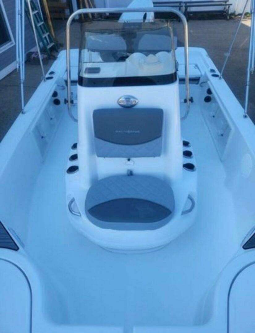 The 194 Bay is a hard-charging boat that gets out of the hole quick with a Suzuki 140 outboard. Its creature comforts includes two rear fold-down jump seats and an aft swim platform with an extending ladder. For the pro inshore angler, there is a 27-gallon aft livewell and a 13-gallon livewell/baitwell under the console seat. Six vertical rod holders flank the helm and an ample 93” layout holds latched storage compartments for gear, and an insulated fish box, below deck.