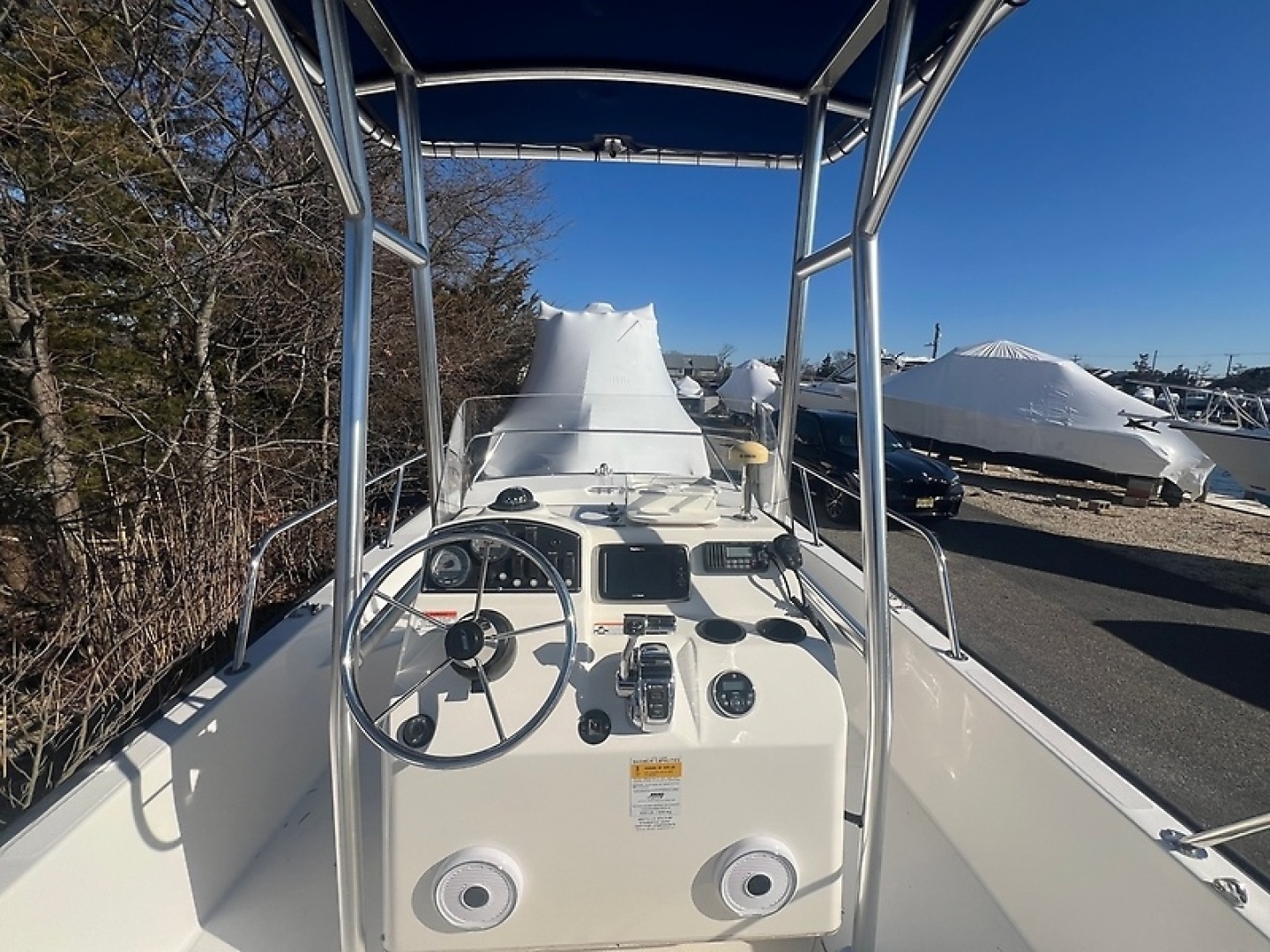 At 19-feet long and with an 8-foot beam, the 190 is the roomiest, most feature-rich Montauk ever. This classic-style Boston Whaler center console offers 360-degree fishability and is full of the kind of functional designs that Montauk owners demand: A built-in fuel tank; a stainless steel combination bow chock / navigation light at the bow; molded-in nonskid on the forward storage anchor locker hatch for secure footing; a reversible pilot seat with four locking positions for flexible seating options; three aft storage compartments; strategically placed stainless-steel grab rails for security in rough water; plus a Mercury 115-hp FourStroke outboard engine. Take it up a notch and choose the optional 150-hp Mercury Verado for added performance.