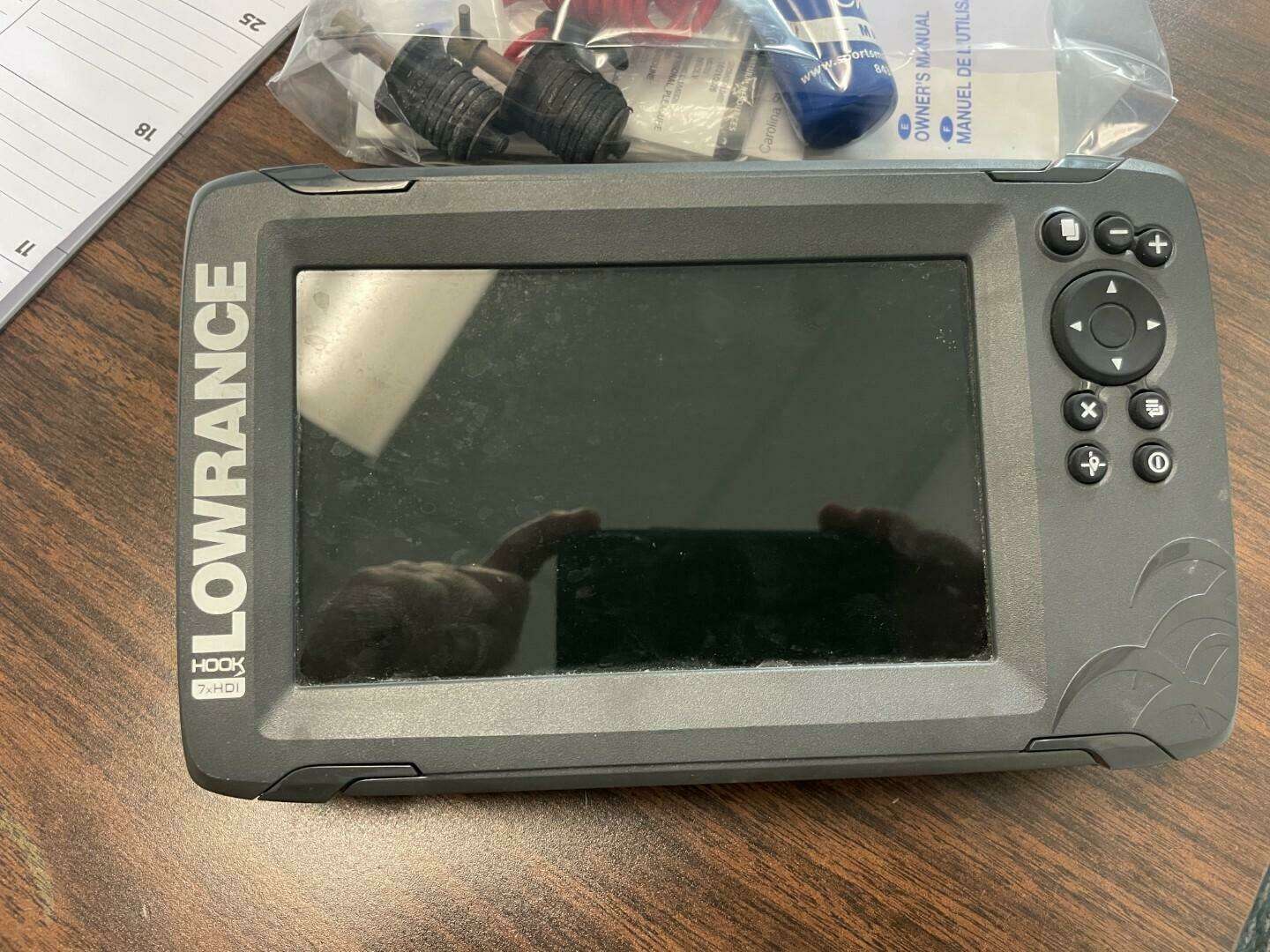 Key features include a Lowrance Hook GPS, a Minn Kota trolling motor, and two livewells for fishing enthusiasts. The boat's design incorporates large front and rear fishing decks, along with stainless steel components for durability. Ample storage and spacious deck areas allow for a variety of activities, whether family outings or dedicated fishing trips.