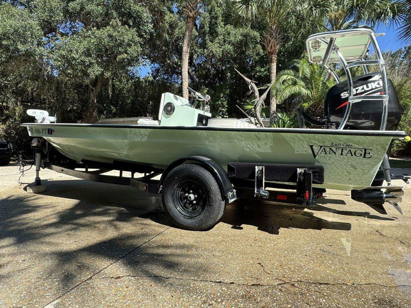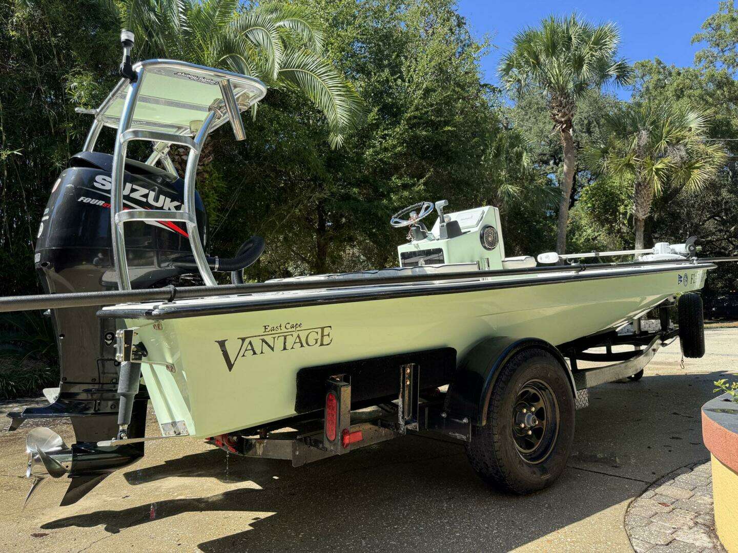 The Vantage from East Cape is a versatile inshore sight fishing vessel with the shallow water draft and maneuverability of a skiff with the rough water capabilities of a bay boat. Pole-able and quiet for stalking shallow water gamefish and excellent as a platform for a single angler or up to four. Tons of storage for gear and tackle, poling platform, trolling motor, push pole, and an oversized live well make for a top tier fishing experience. East Cape Boats are built strong and light for professional guides and the most hardcore of anglers. Garmin GPS/Fishfinder, 90hp Suzuki Four Stroke outboard with only 400 hours, and trailer included!