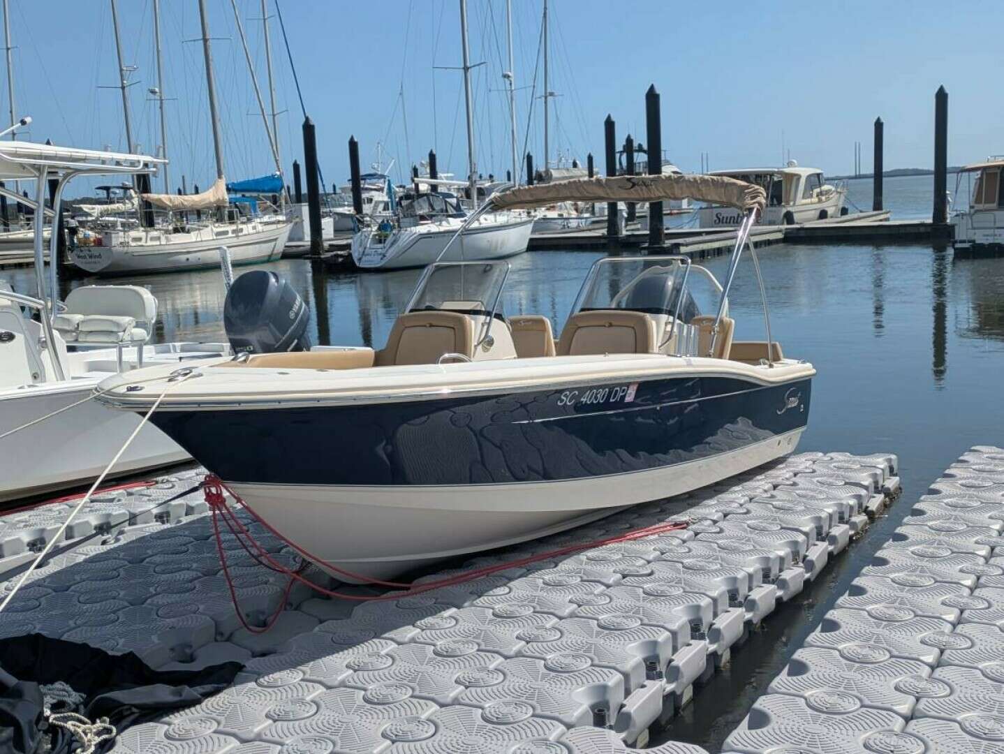 This 2021 Scout 195 Dorado is a 19-foot dual console boat with only 54 hours! Praised for its stylish design, versatility in switching between fishing and family cruising and solid construction, It offers ample seating for up to eight people, a comfortable ride, and is powered by a Yamaha 150.The upholstery is in very good condition, including the gelcoat. All electronics and systems are functioning properly and and ready to go! Extras include a custom fitted cover, anchors and four life jackets. A magic tilt trailer is included.