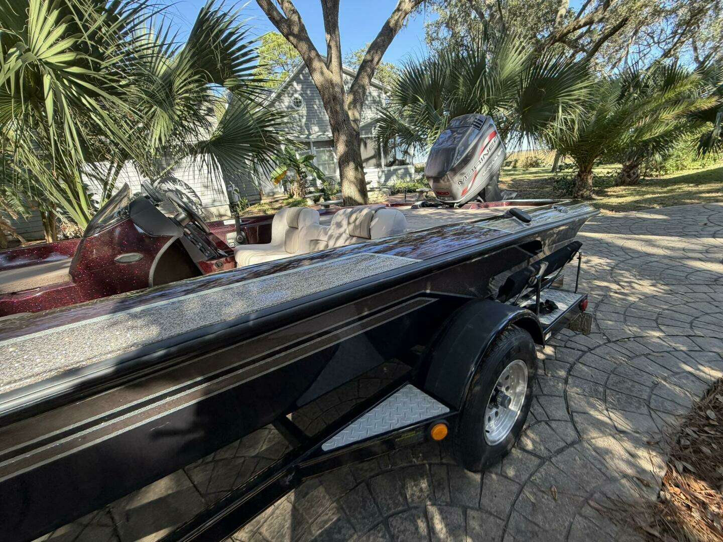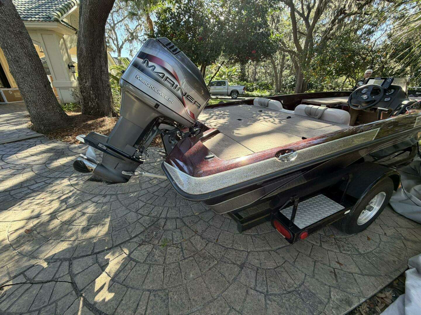 a Mariner Magnum 200 EFI and paired with a factory painted trailer.