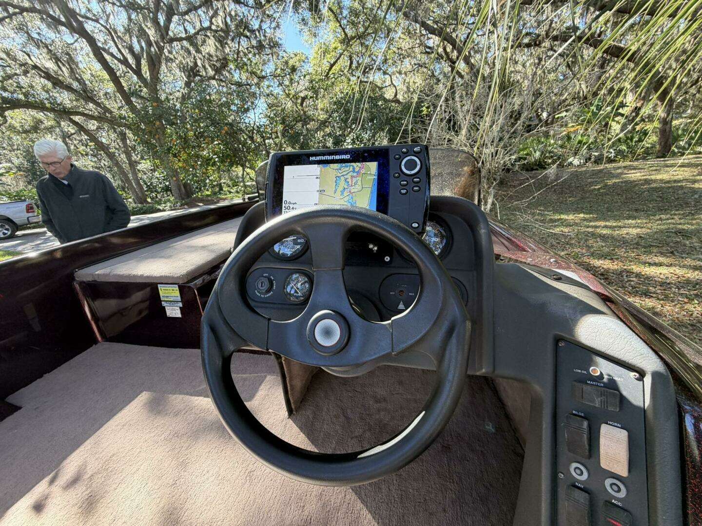 Humminbird GPS, Humminbird color fish finder, trolling motor charging system, cranking battery charger, and
