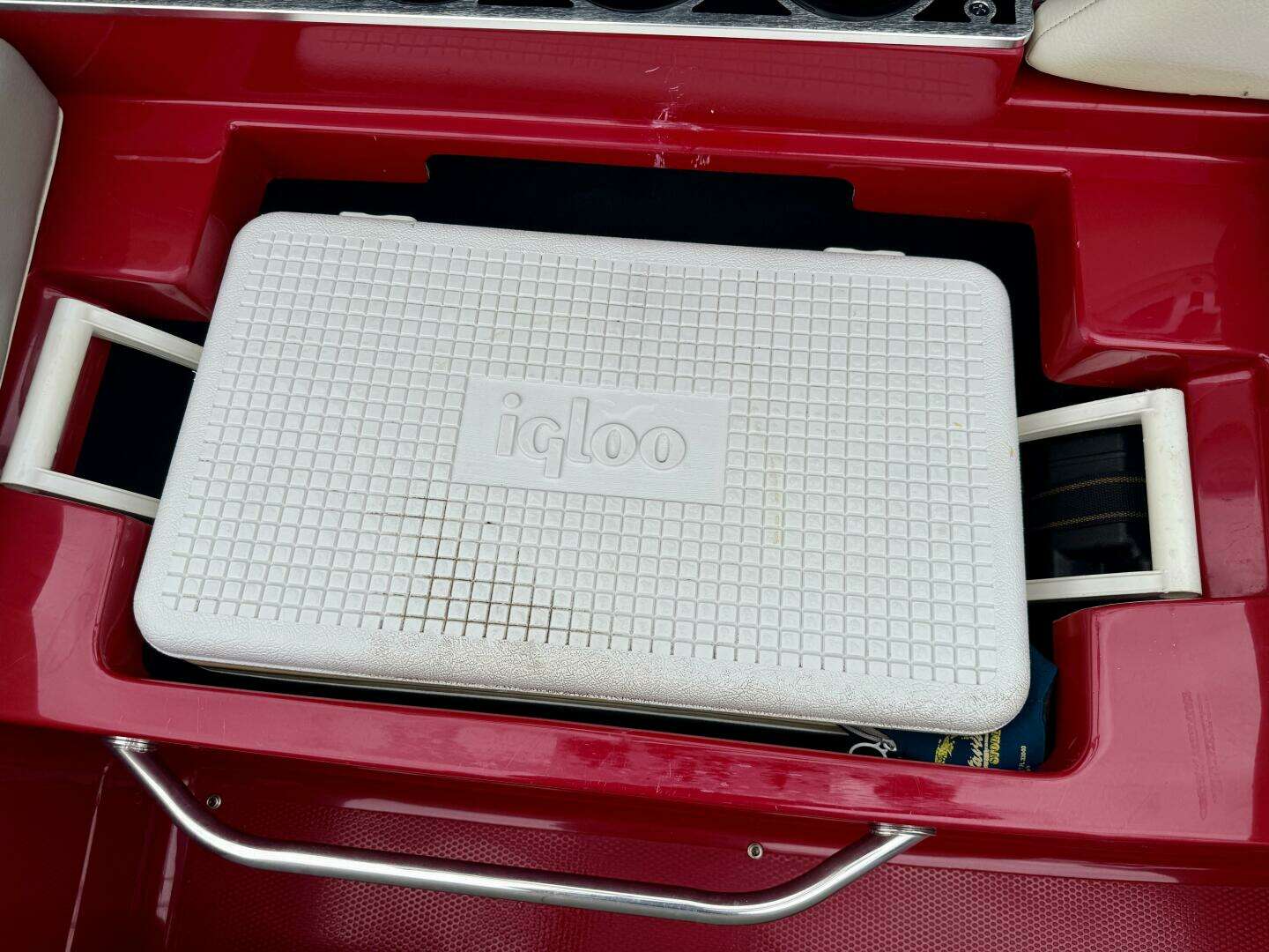 Removable Igloo Cooler w/Under-Seat Storage, Snap-In Cockpit Carpeting (Not Shown), Mooring Cover,