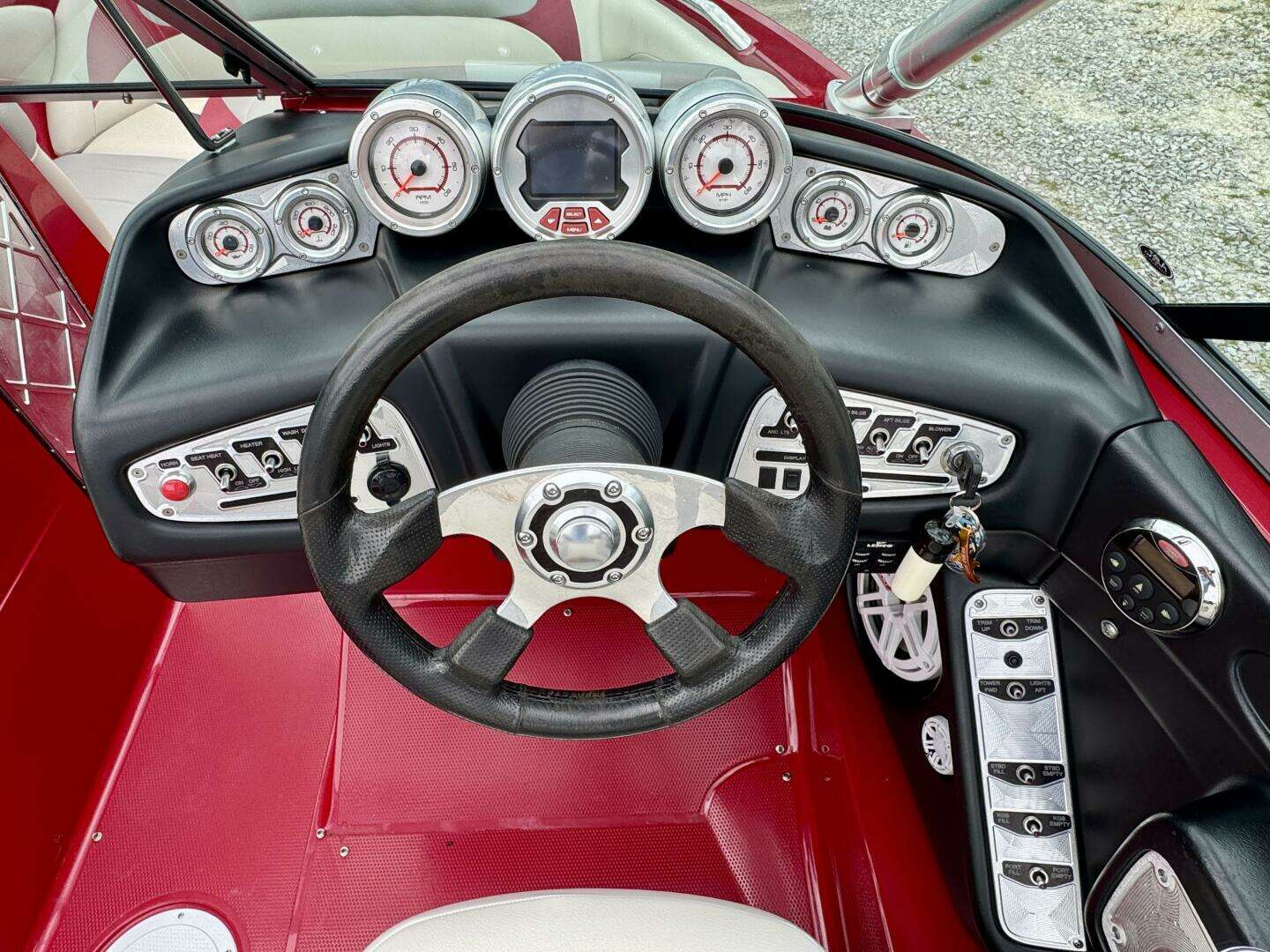 | Notable Upgrades: (3)Rear-Facing Tower Lights, (2)Tower Docking Lights, (2)Under-Water Lights, Clarion AM/FM/CD/Aux-Input Stereo w/(2)JLAudio Amplifiers, JLAudio Subwoofer, Driver Remote, & (8)JLAudio Speakers/Tweeters (4-Cockpit/4-Tower), Dual Batteries with Selector Switch, Engine Service, New Impeller & Batteries (in August of 2025)! One Owner – All Fresh Water Use! |