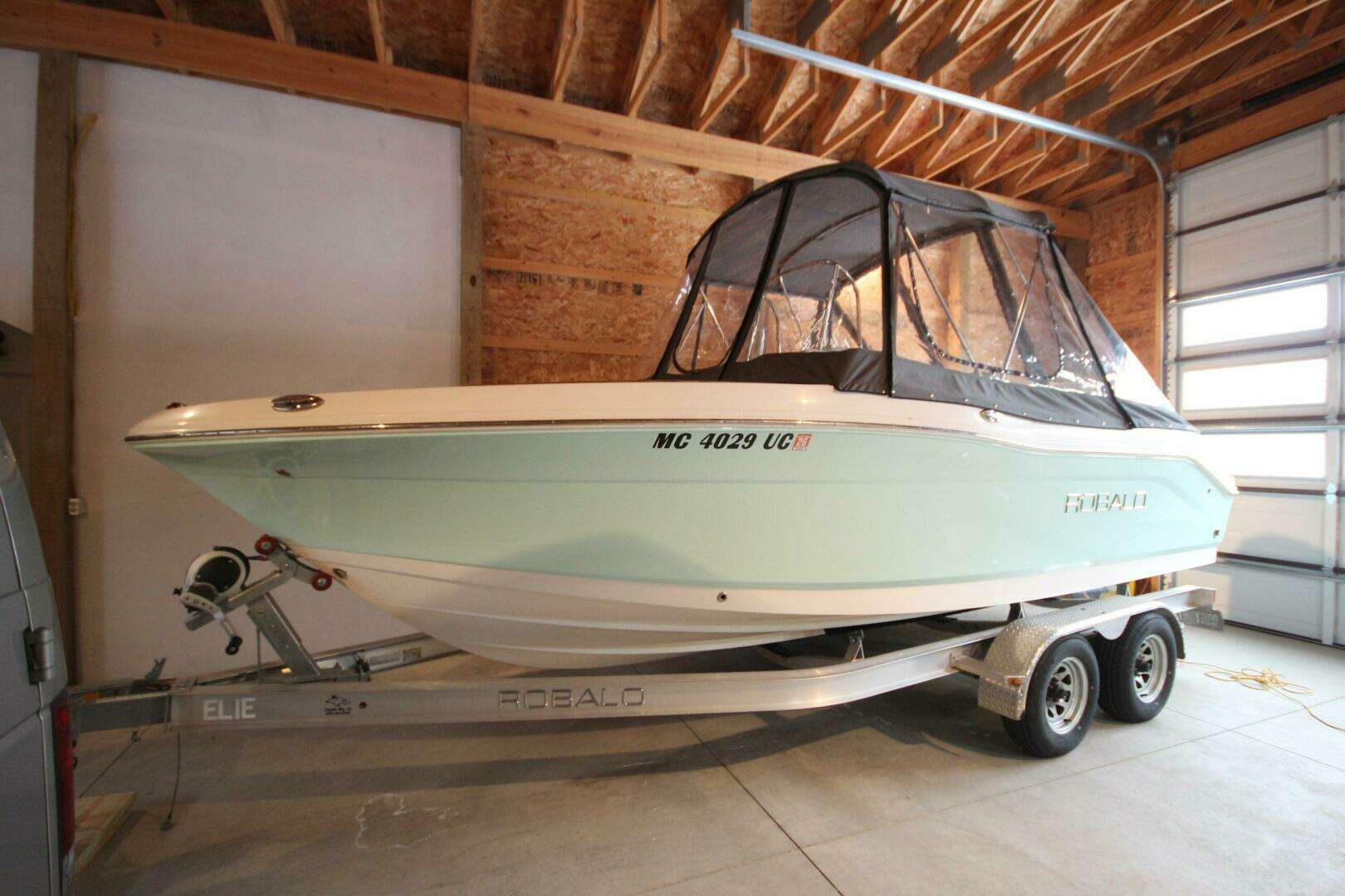 It does not have a T-Top which allows for versatility if your are using an in/out service. The Bimini offers multiple configurations as well extending your boating season. She has been well maintained and kept behind the owners house. It comes with all the Robalo features as well as an added Garmin 63cv Echomap chartplotter and custom helm and helmseat canvas covers. Whether your are pulling tubers or fishing we are offering this Trade in at a Great price to get you going on your adventures. Call set set up an appointment to see her today!