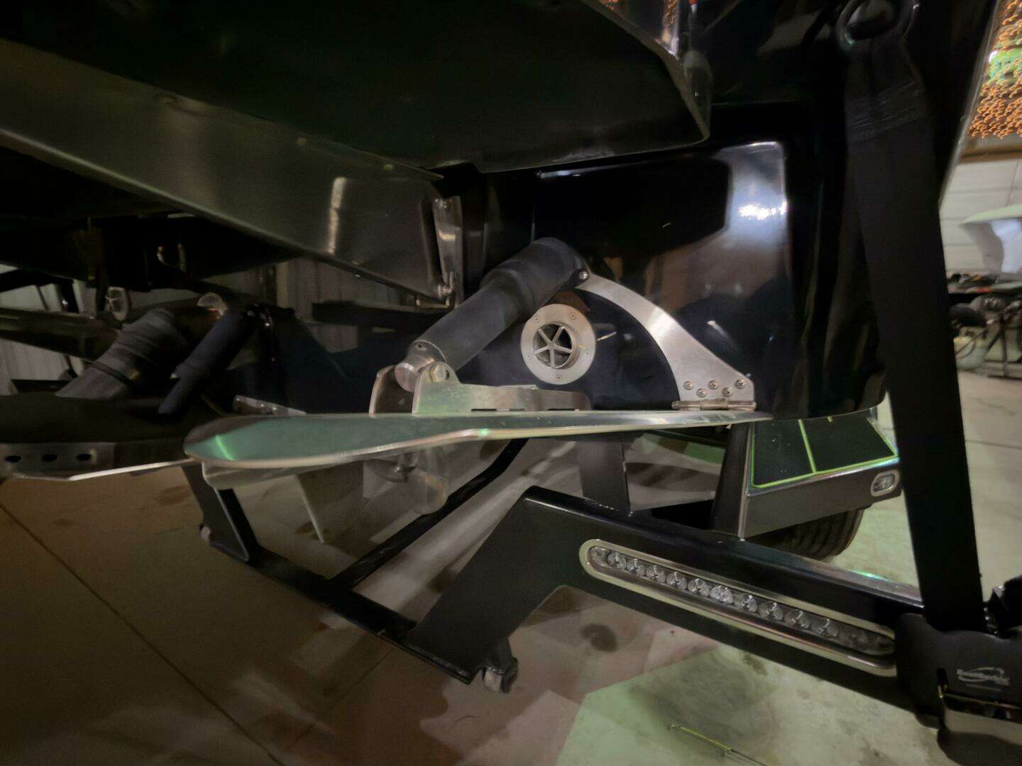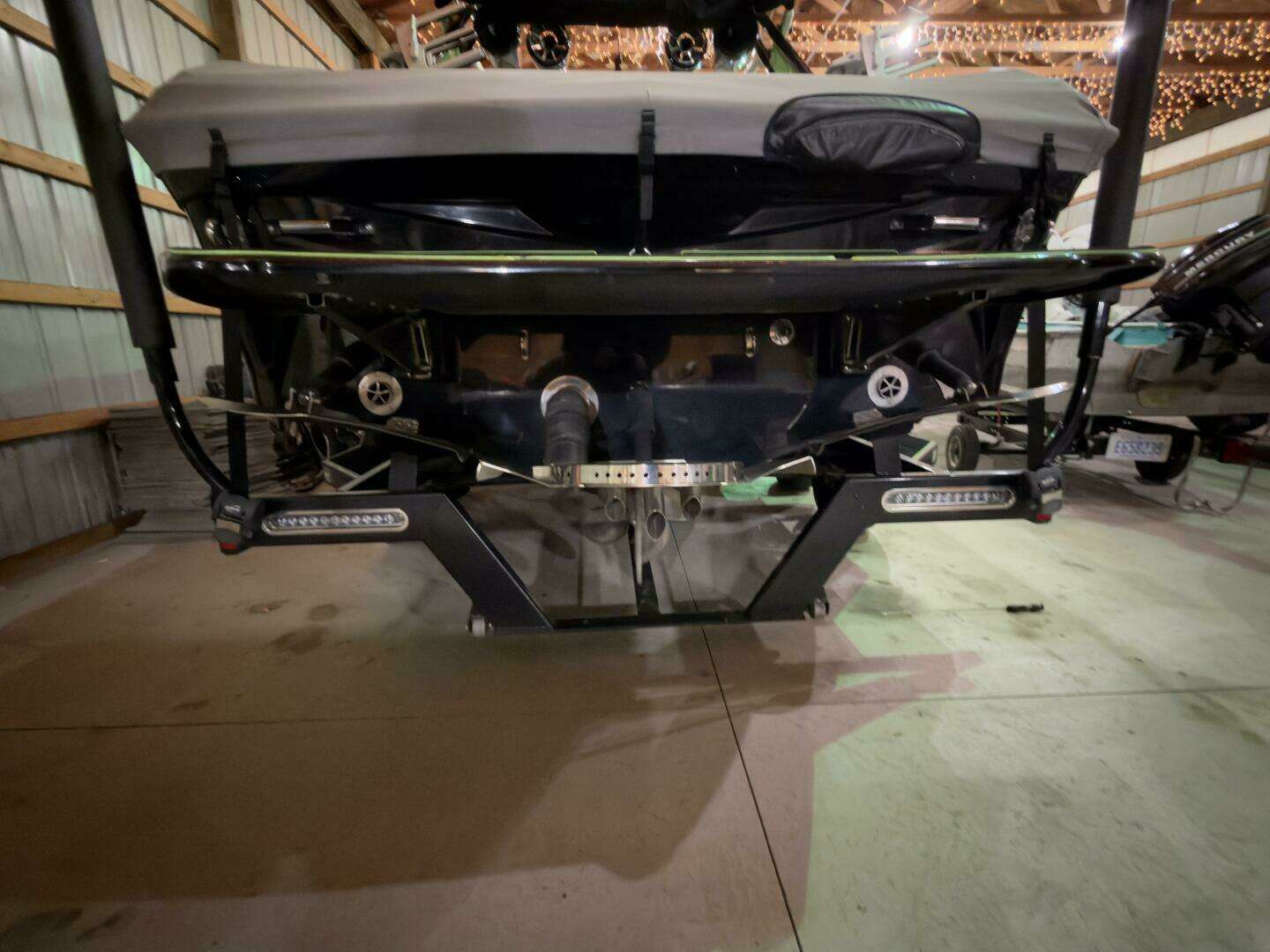 -Factory Tandem Axle Galvanized Trailer w/ Surge Brakes (each axle) crossmember protective rollers, tongue jack, bow winch w/ roller, LED Lights, cushioned guide poles, gator stepped fenders.