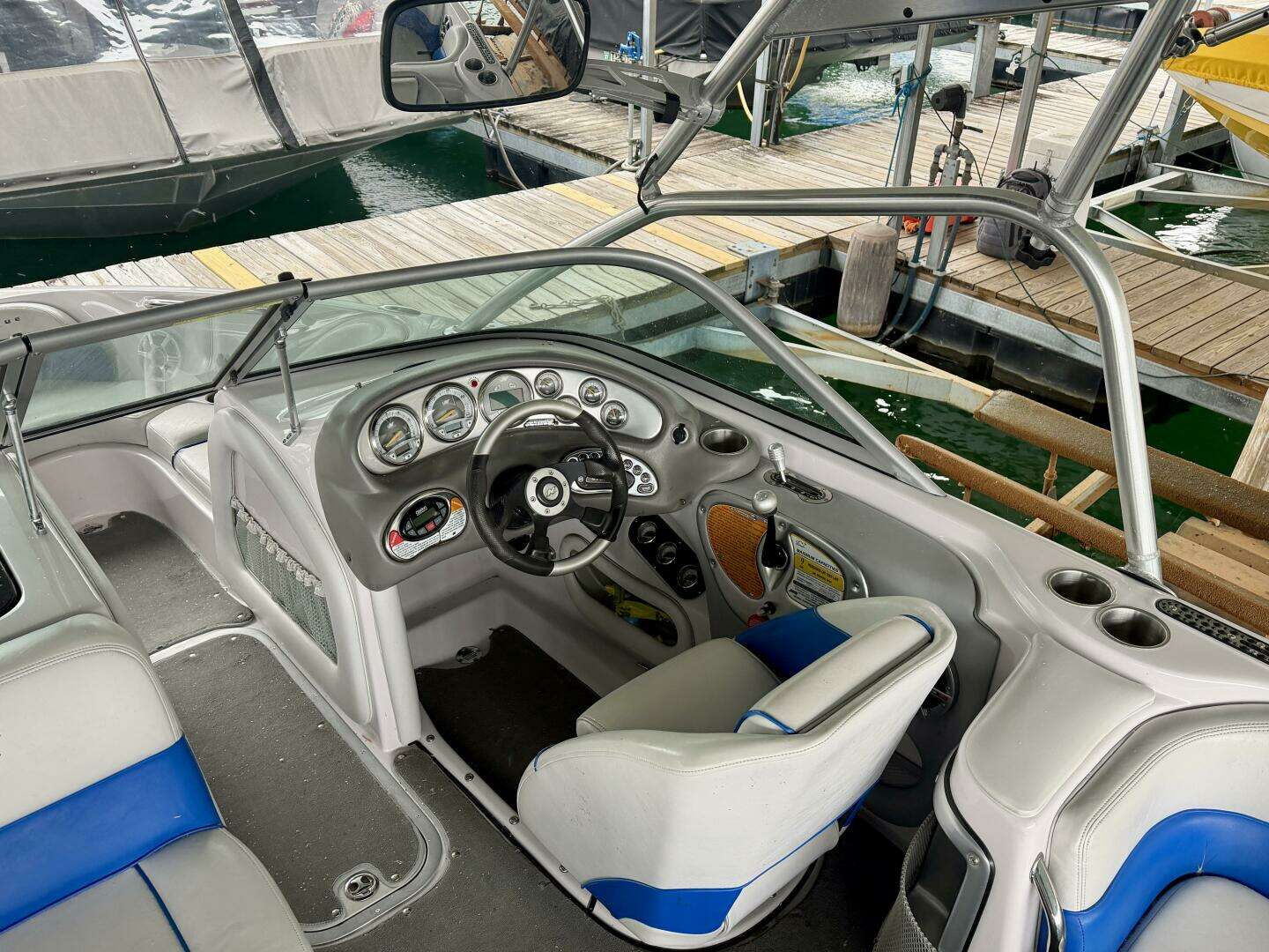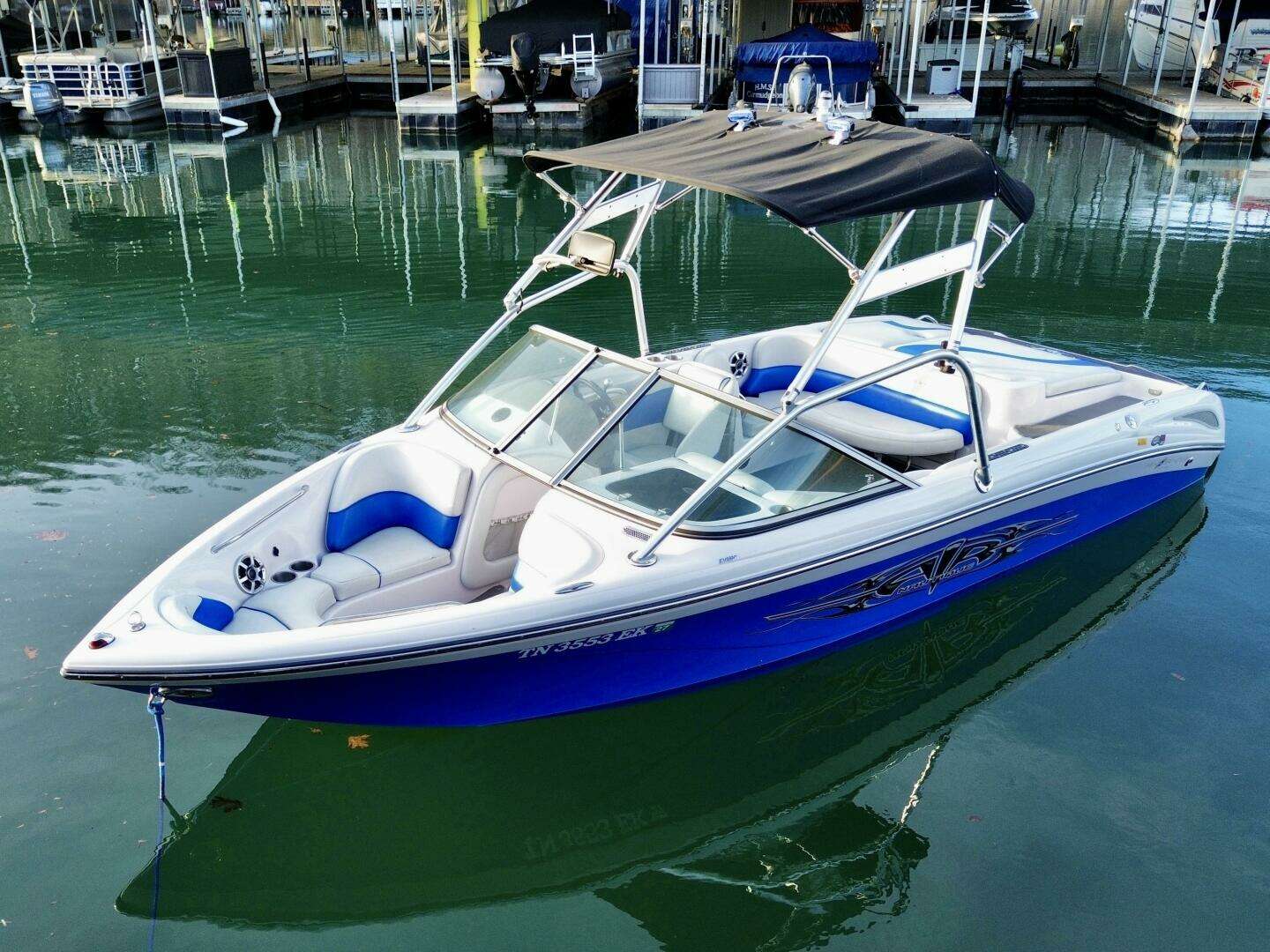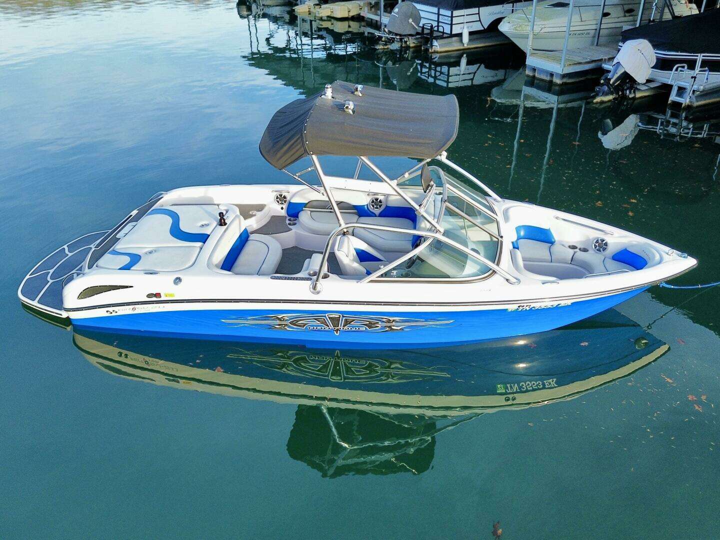 | Notable Upgrades: Flight Control Tower w/Tower-Mount Bimini, (2)Lights, Polk Audio Tower Speaker, & Tower-Mount Rear-View Mirror, Clarion AM/FM/CD/Aux Input Stereo w/Driver Remote, Polk Audio Cockpit Speakers, (2)Amps, & Subwoofer, Docking Lights, Dual Batteries w/Battery Switch, Onboard ProMariner Dual Battery Charger, Keyless Ignition System, Mooring Cover, Snap-In Cockpit Carpeting, & More! All Fresh Water Use - Stored on Lift Under Covered Slip - One Owner! |