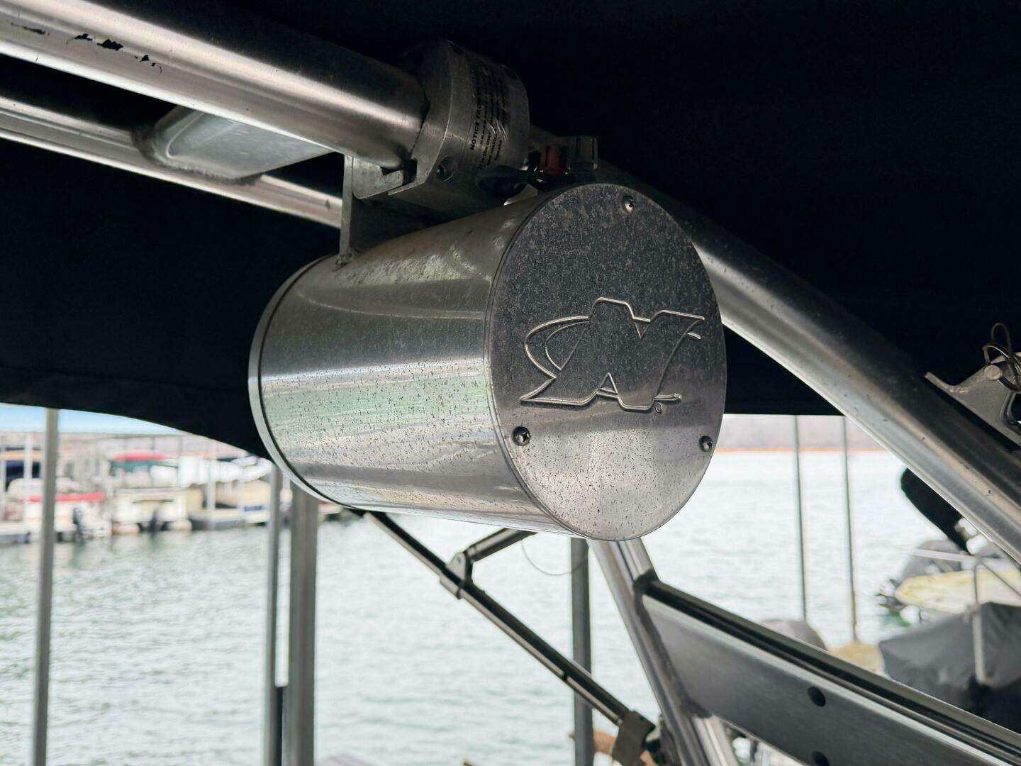 Flight Control Tower w/Tower-Mount Bimini, (2)Lights, (1)Polk Audio Speaker, & Rear-View Mirror,
