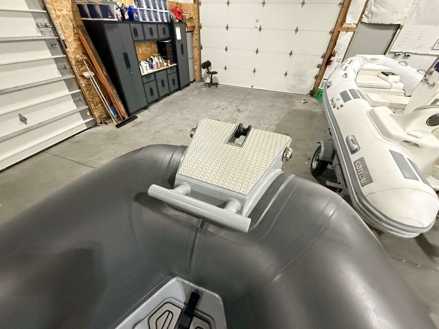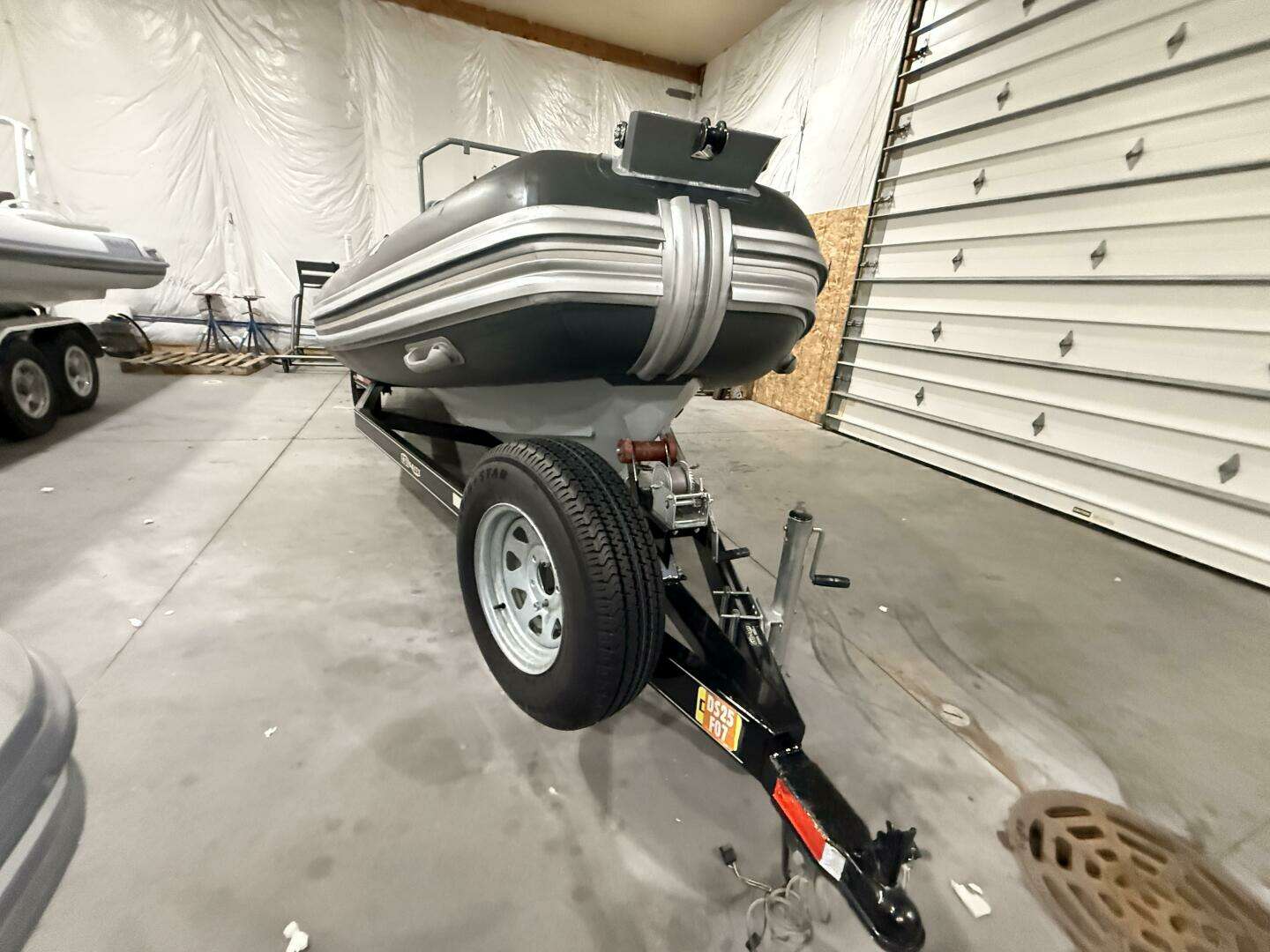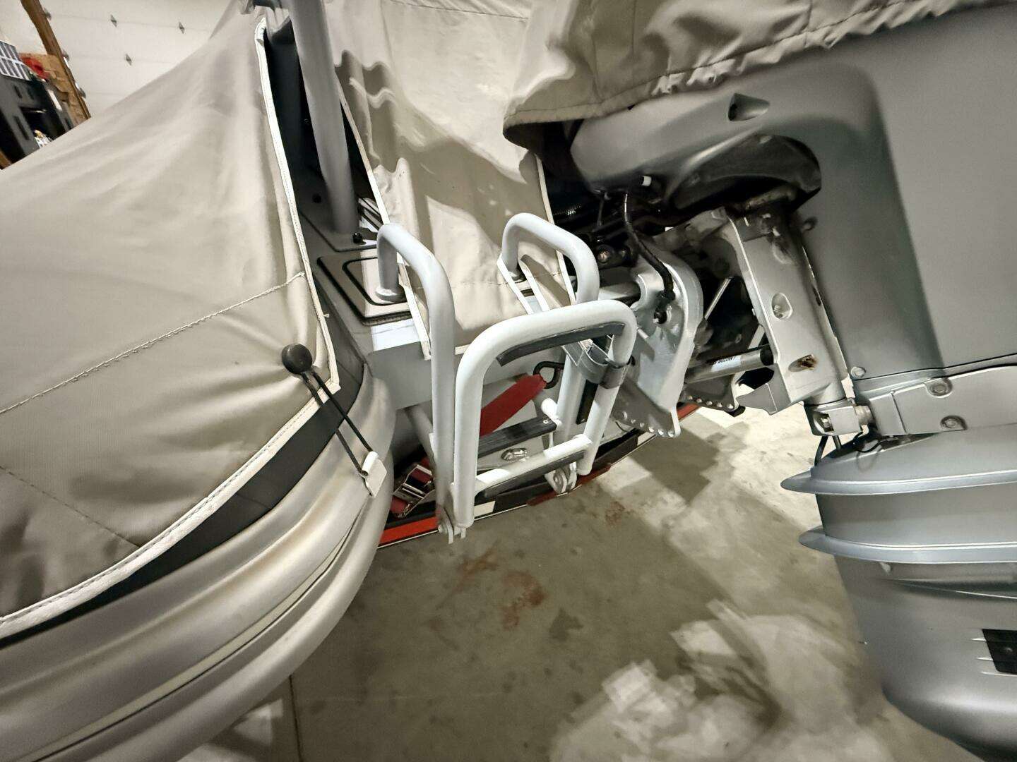- Trailer with guide poles, boat tie down straps, engine support tubes