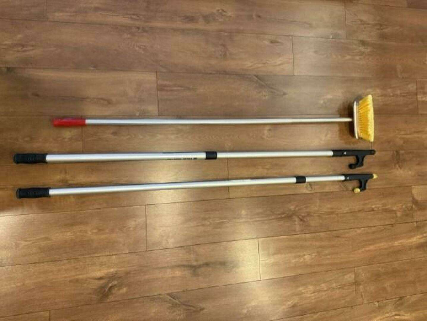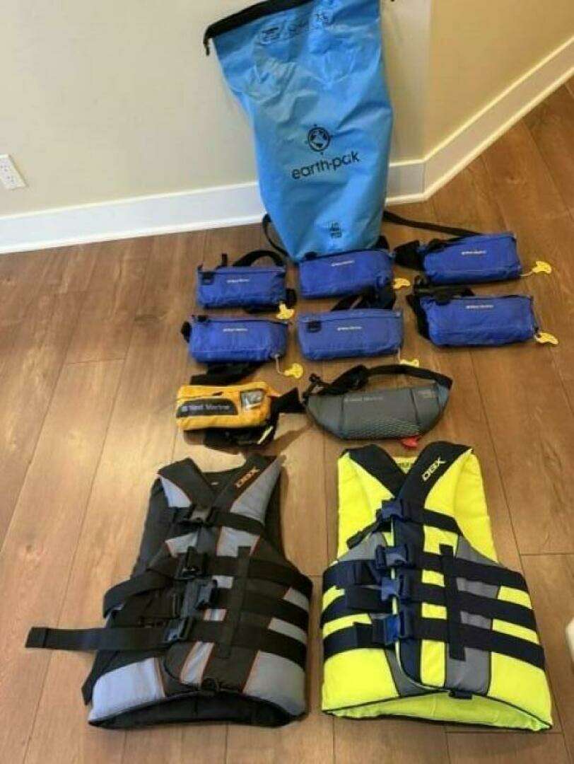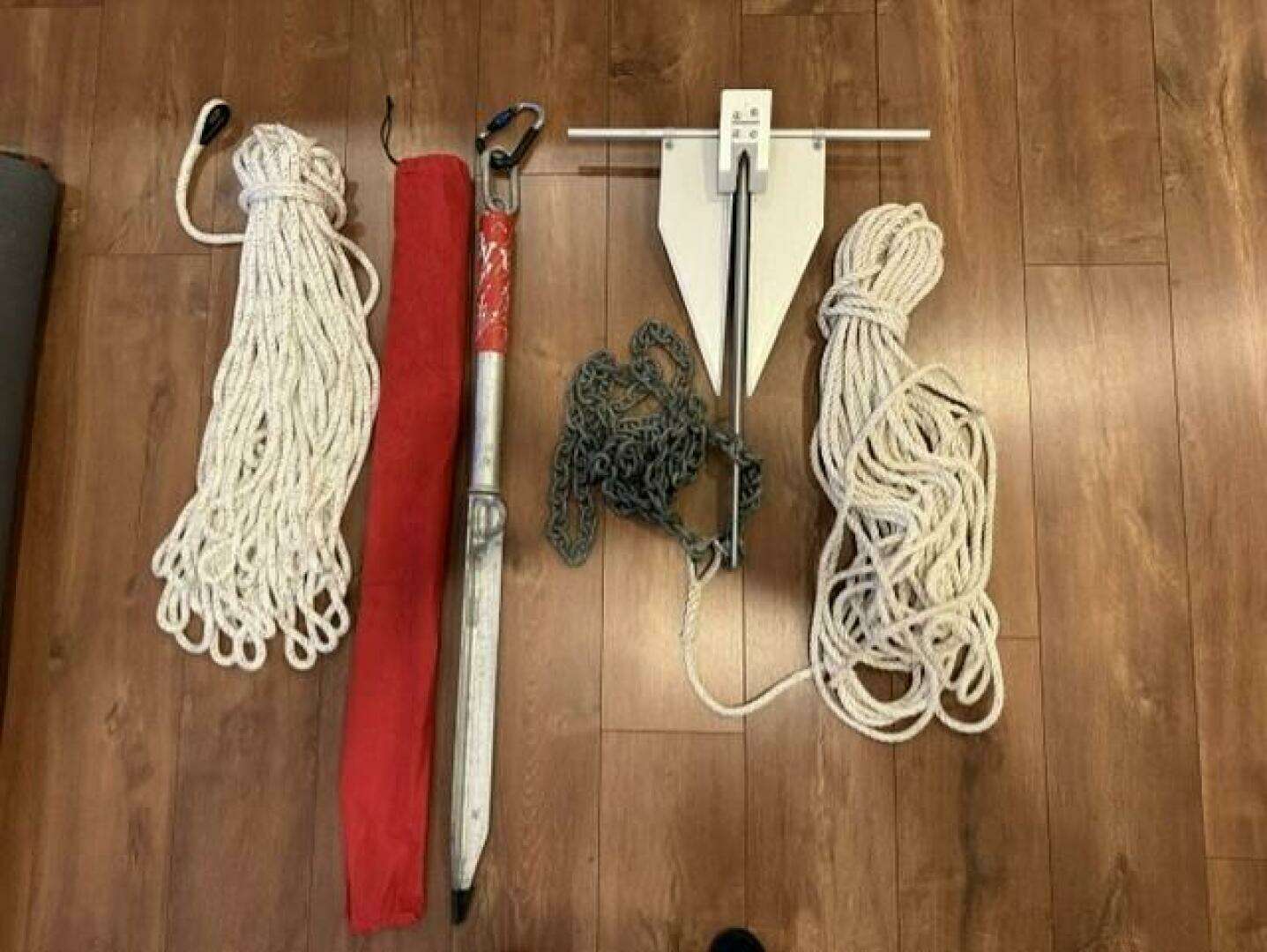 - Trailer with guide poles, boat tie down straps, engine support tubes