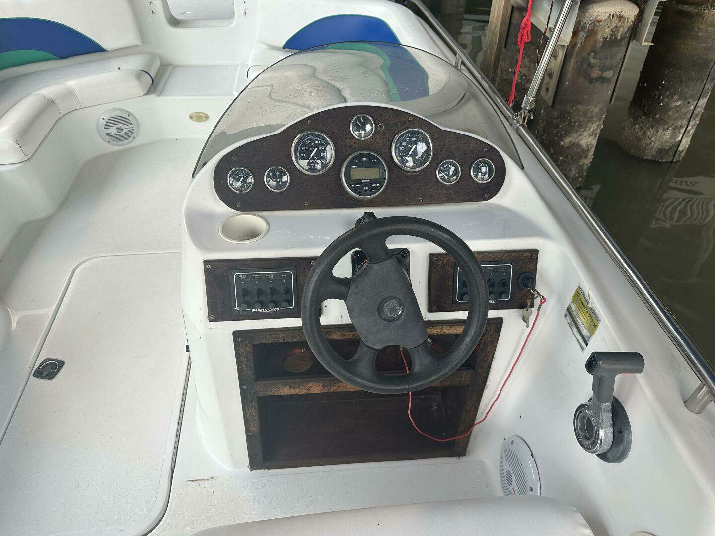 Hurricane Fundeck. No hour meter, unknown hours. The boat was bought by the current owner in 2012. No trailer, boat is in the water.