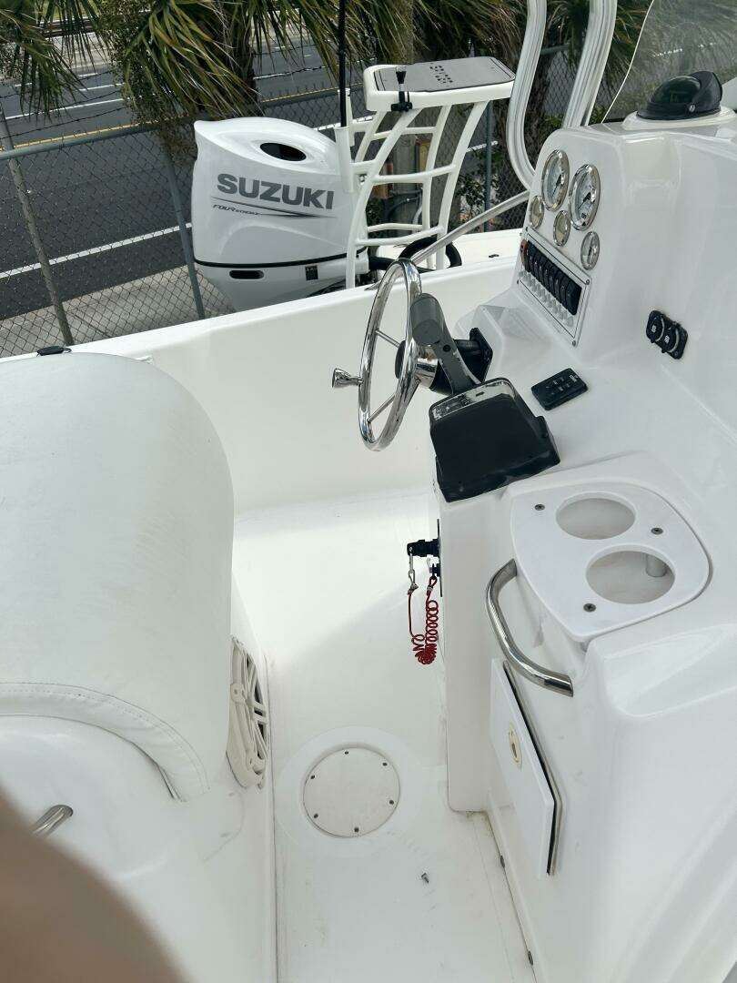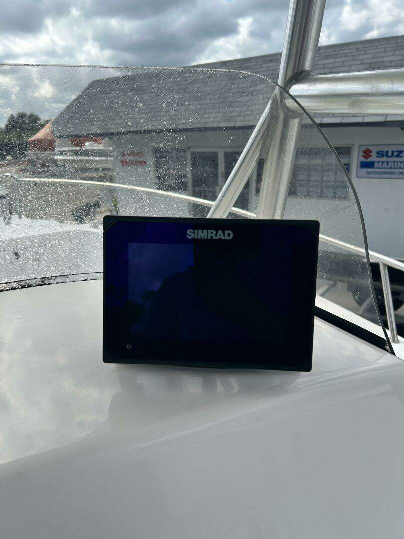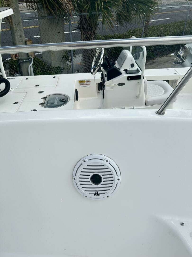Boat is equipped with a Simrad MFD for chart plotter and Sonar. JL audio stereo with bluetooth connectivity. The forward bow cushion, large helm seat, and rear jump seats provide comfortable seating and lounging for all on board.