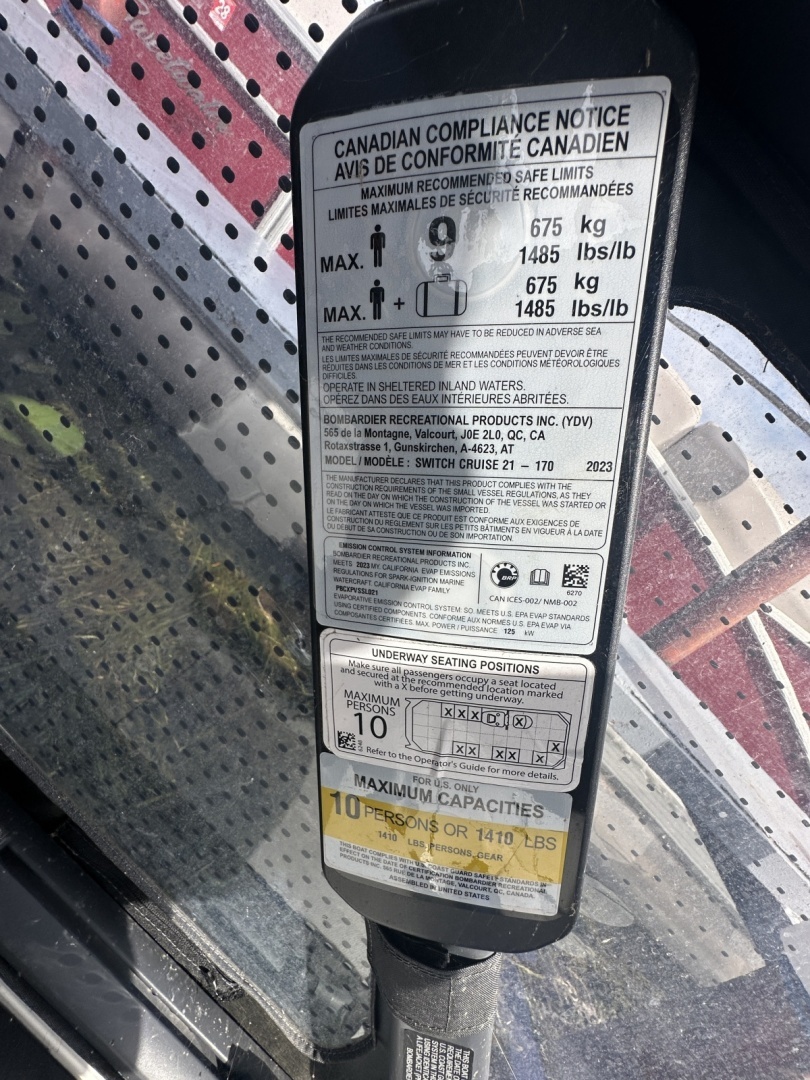 Powered by a 170hp Rotax 1630 ACE engine, the Switch Cruise delivers smooth acceleration, excellent fuel efficiency, and responsive handling. The jet drive system, combined with intuitive handlebar steering and Sea-Doo’s Intelligent Brake and Reverse (iBR), makes docking and maneuvering simple—even for first-time boaters.