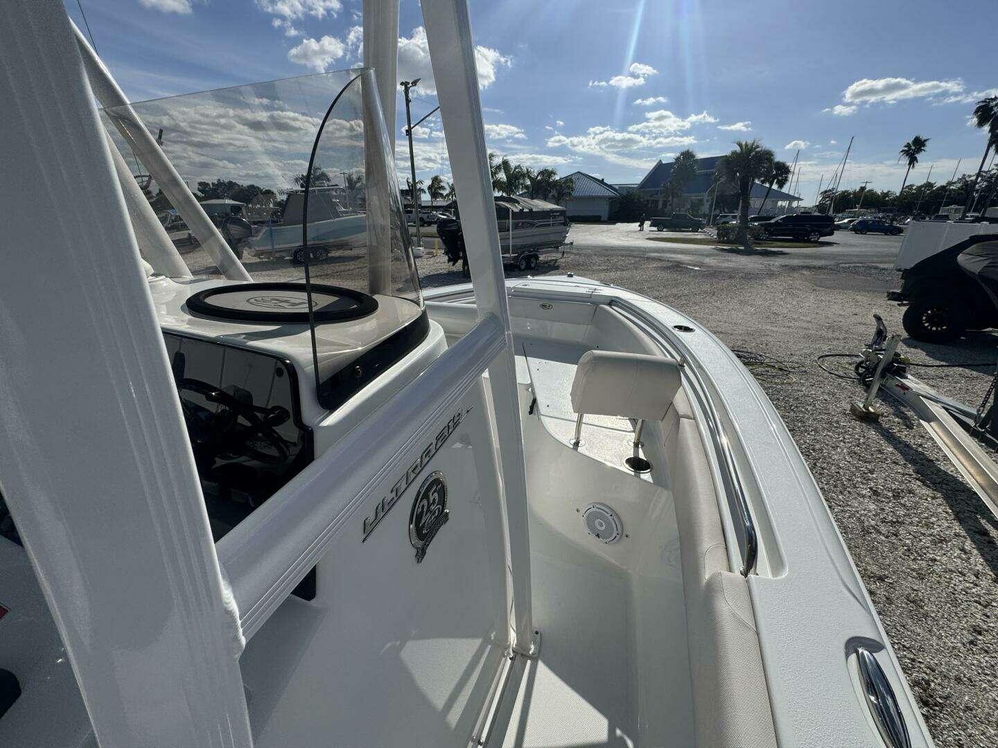- Comfort: Freshwater & raw water washdowns, optional hard top with misters/lights, and an optional Porta Potti.