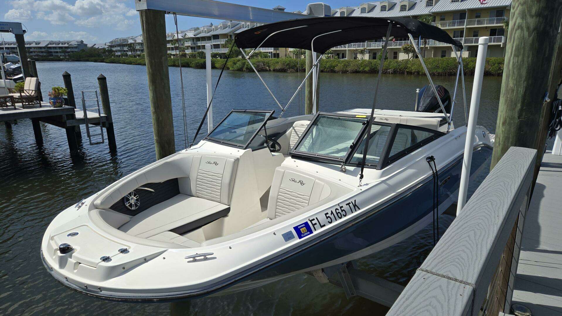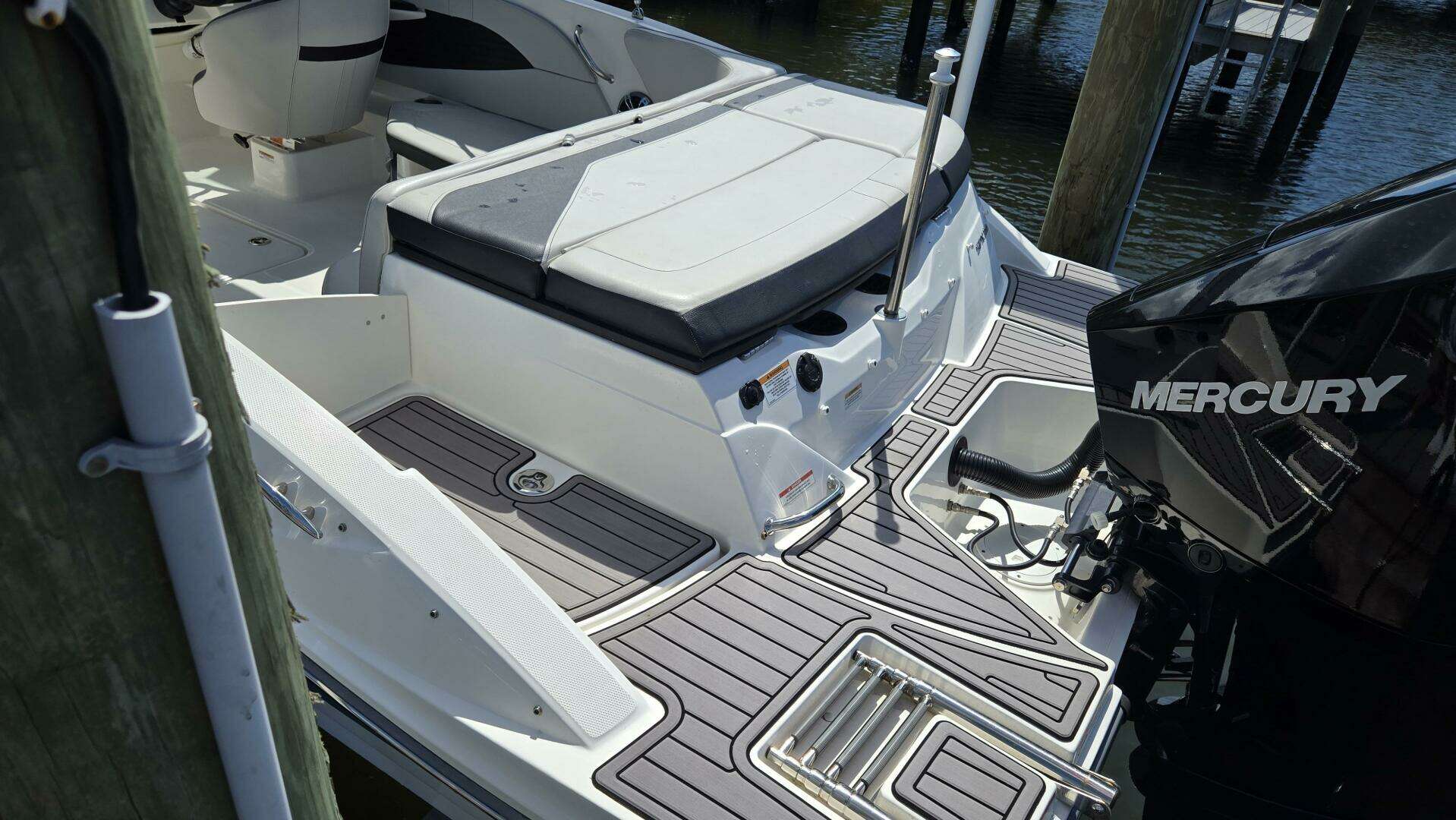 vessel that combines elegance with performance. With an overall length of 21 feet, this boat features a sleek modified vee hull crafted from durable fiberglass, ensuring a smooth and stable ride on the water. Powered by a Mercury 200 hp engine with only 50 hours, this boat offers impressive acceleration and responsiveness, making it perfect for both leisurely cruises and thrilling water sports. The Sea Ray SPX 210 OB is designed for comfort and enjoyment, featuring ample space for relaxation and entertainment with full Sea Deck flooring.