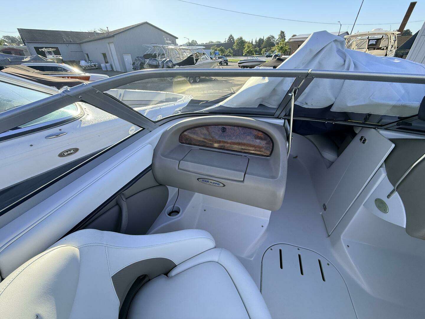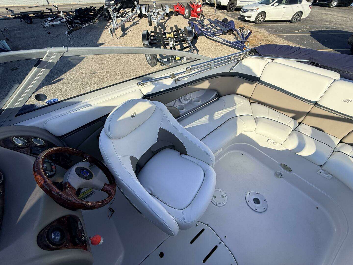 CLEAN-CLEAN-CLEAN!! This one has been closely cared for. All service records on file. 100% fresh water history, shore station kept on a small inland lake. Includes: Bimini Full storage cover Cockpit covers Cockpit carpet Original owners manuals