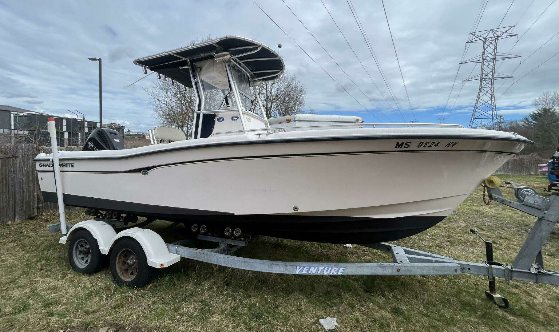 A nicely kept Grady-White Fisherman REPOWERED in 2023 with a 250HP Tohatsu outboard (approx. 55 total hrs), new Garmin electronics (2023), 2004 Venture trailer included!