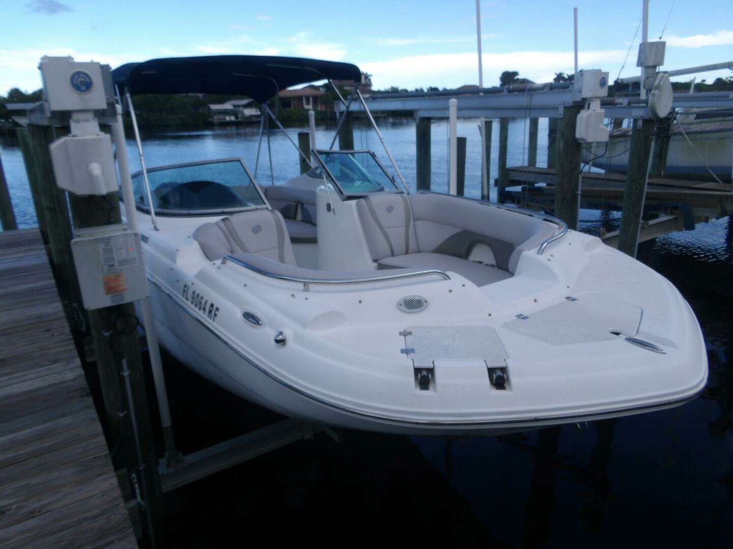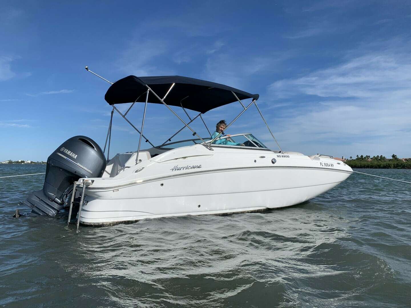 2017 Hurricane Sun Deck 2200 OB with 150 Yamaha. We are pleased to present this lift kept Hurricane Sun Deck for your consideration. Her cushions were just redone and she has a Bimini top. Other features include a swim platform and ladder, front ladder for beaching, seating for 10 and a 150 Yamaha !