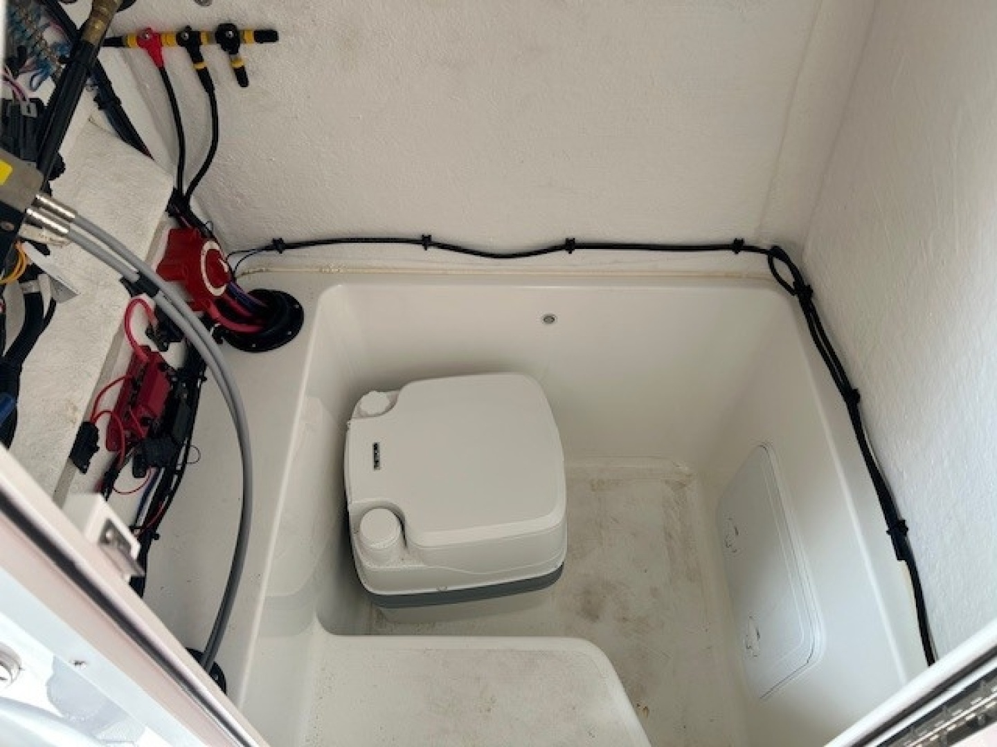 - Full size storage compartment, doubles as a head with the Thetford Porta-Potty.