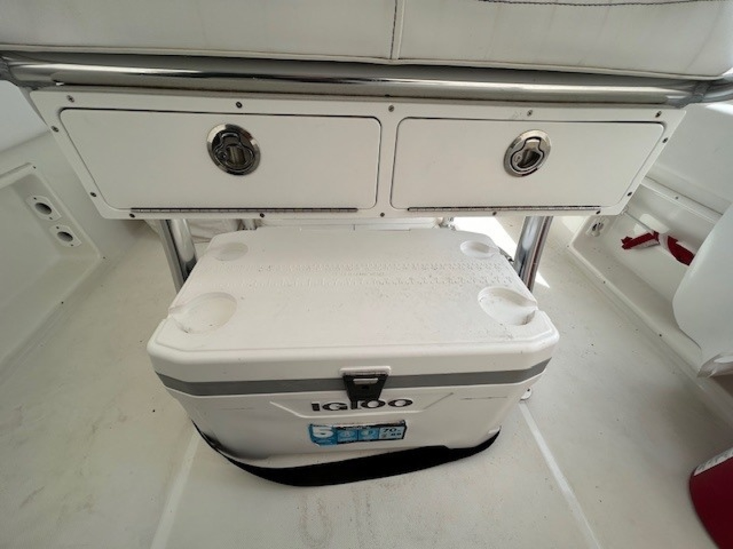 - 70qt Cooler mounted under the helm seat.