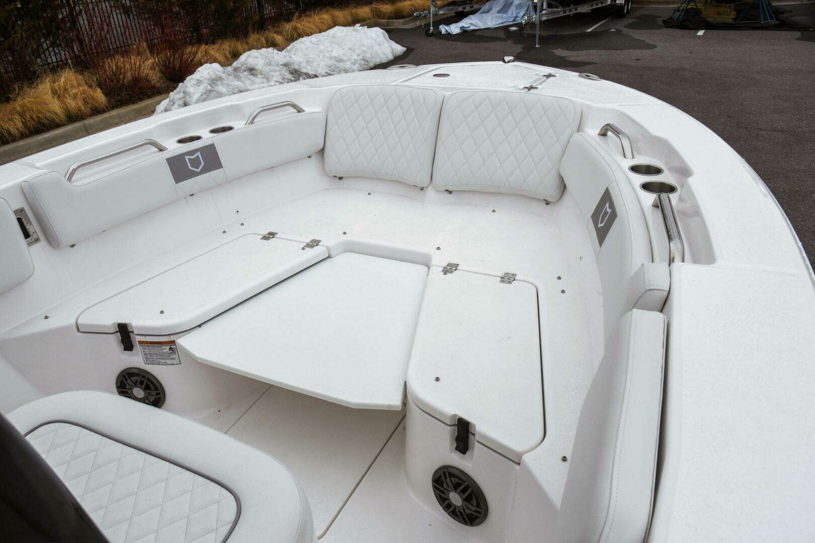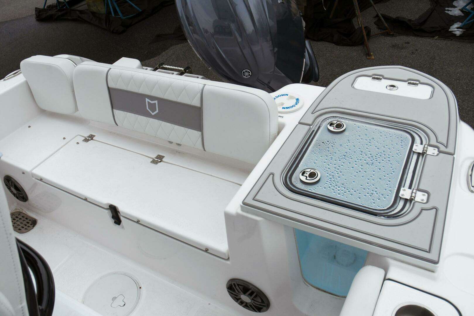 - Transom storage compartment - plumbed and insulated for use as a cooler and notched for beach anchor storage