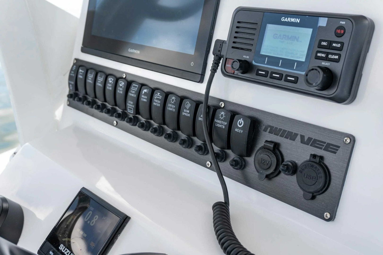 - Rocker switch panel — backlit, with 12v and USB charging ports