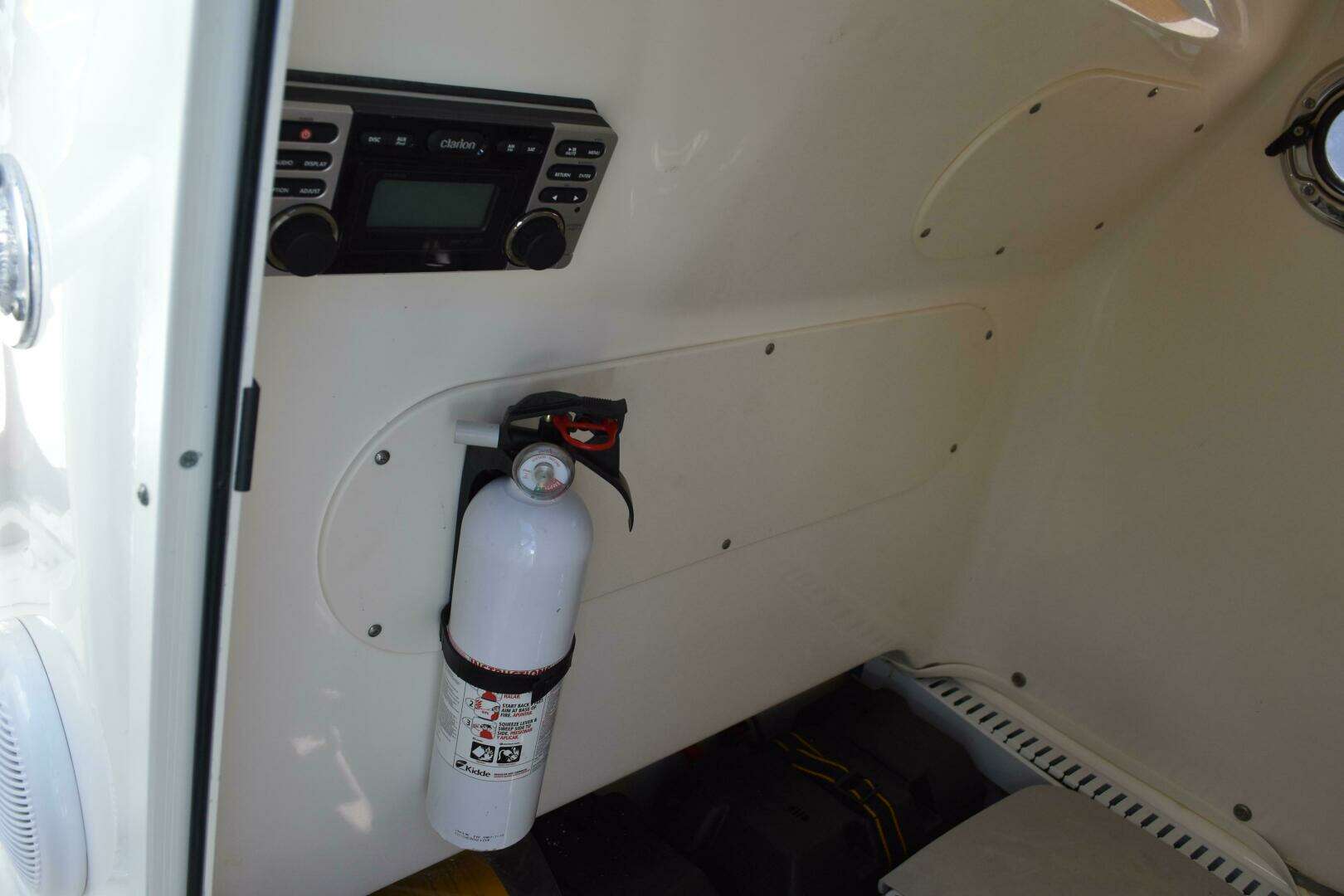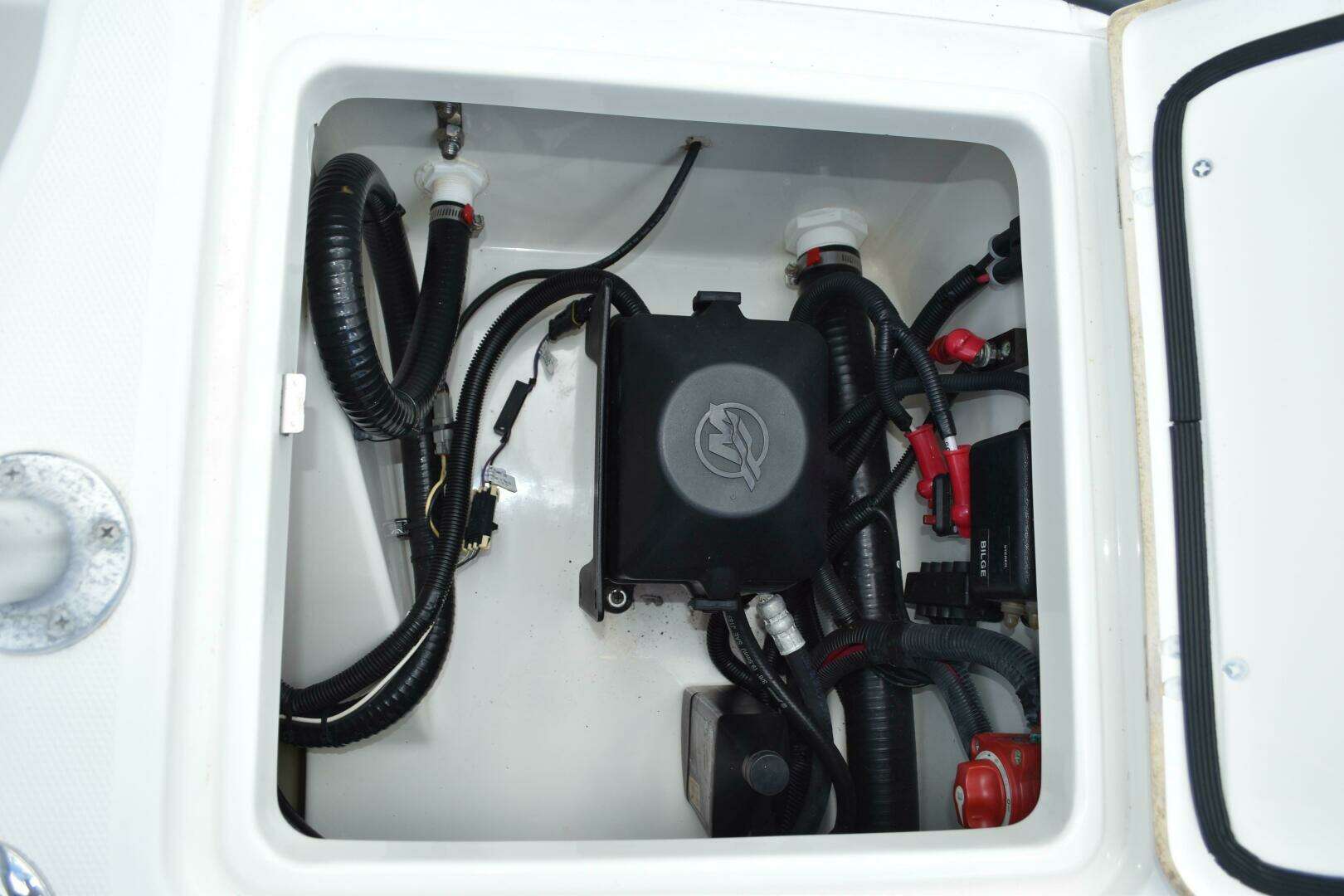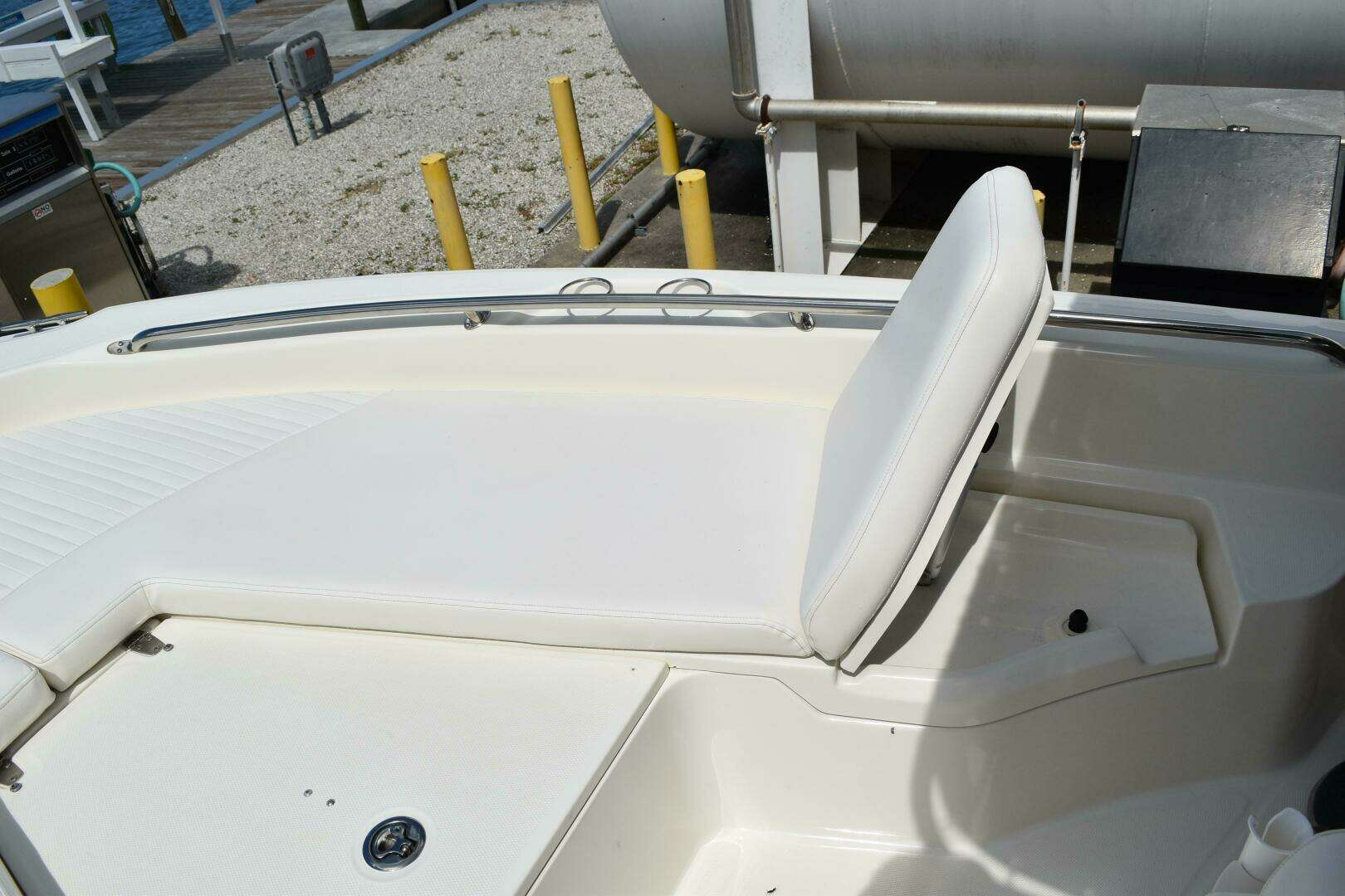 This Boston Whaler 230 is in excellent condition, with two owners since new, with service records. You can see why the Dauntless 230 is a popular design Center Console. This beautiful boat has an unblemished white hull, accented in black. It is powered with the low maintenance Mercury Verado 250 motor, with 290 hrs. An added feature of this boat is the addition of a bait box, located in the helm seat with recirculatory pump. This boat offers a spacious head with porta-Potti toilet and pressure water system.