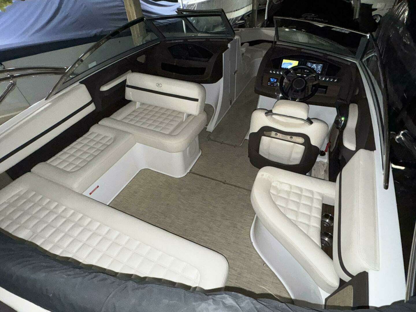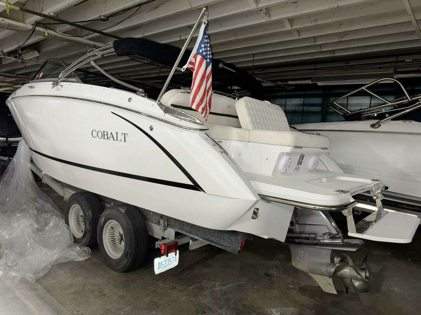 Here is a Great opportunity on a One owner, Freshwater Cobalt R3 Bow Rider! This has been a lift kept boat in the summer and stored inside heated in the winter. The bottom is shiny, factory gel coat! This is a Classy and well-appointed boat powered by a 300hp Volvo and Duo Prop outdrive with only 341 hours. This boat has a Bow and cockpit cover, Premium easy-fold bimini top, Premium sound system with Rockford Fosgate stereo, Amps, Sub and transom speakers, Glass cockpit with Dual Garmin 7607 displays, Sea Grass cockpit flooring, Quilted pattern upholstery accents, Bow docking lights, LED lighting and more. Cobalt enjoys a strong reputation of being a Top-Line boat and this R3 is no exception, the Quality and Fit/Finish is evident throughout. The cockpit seating on this R3 is really fantastic, there are a lot of options with movable backrests, rear facing transom seat or sun pad along with armrests in the bow and lots of storage. This boat is inside heated storage and available to see. Note: There is no Trailer. The trailer pictured is a yard trailer and does not go with it. We do have a source for trailers if needed.