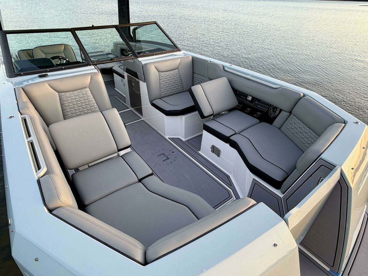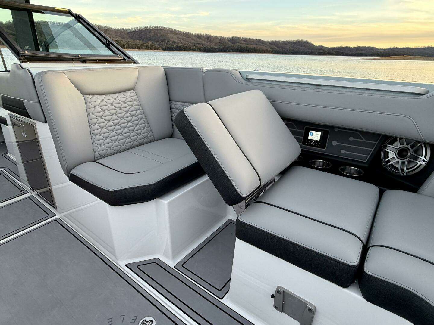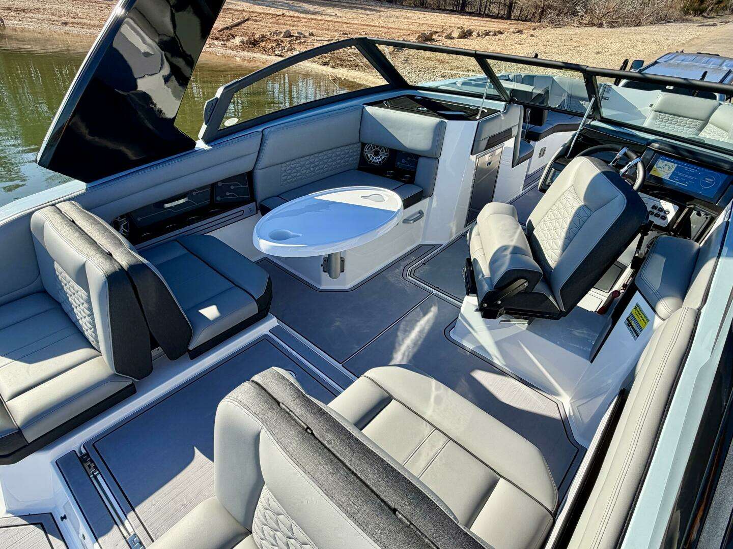 | Notable Upgrades: Upgraded JL Audio Stereo with 8 Cockpit Speakers, 2 Subwoofers, and 4 Stereo Remotes (Helm, Transom, Port/Starboard Bow Lounge Seats Ingenity Connect On-Board Telematics (Mobile App & Remote Diagnosis Capabilities) Fixed Arch w/Bimini Top Bow Sun Shade Integration Cockpit & Bow Snap-On Covers, Mooring Cover, & Winter Cover Electric Powered Telescoping Driver Seat w/Flip-Up Bolster Dometic Optimus Electronic Power Steering w/Electric Actuator Ingenity View User Interface with 12" Touchscreen with Integrated Controls and Vessel Data - GPS/Chartplotter, Air Water Temperature, Depth Finder, Speed/Power Consumption/Range, Charging Status, Drive Trim, Rudder Angle Indicator, Swim Platform Awareness Camera/Rear View, & More Isotherm Stainless Steel Refrigerator Carry-On 36Qt Igloo Cooler w/Dedicated Storage Boat Mate Tandem Axle Trailer with Aluminum Wheels, Dual Disc Brakes, Spare Tire, Guide Poles, Swing Tongue, Transom Tie-Downs, & Step-Up Ladder with Handrails Included! One Owner - Transferable Warranty thru 2027! |