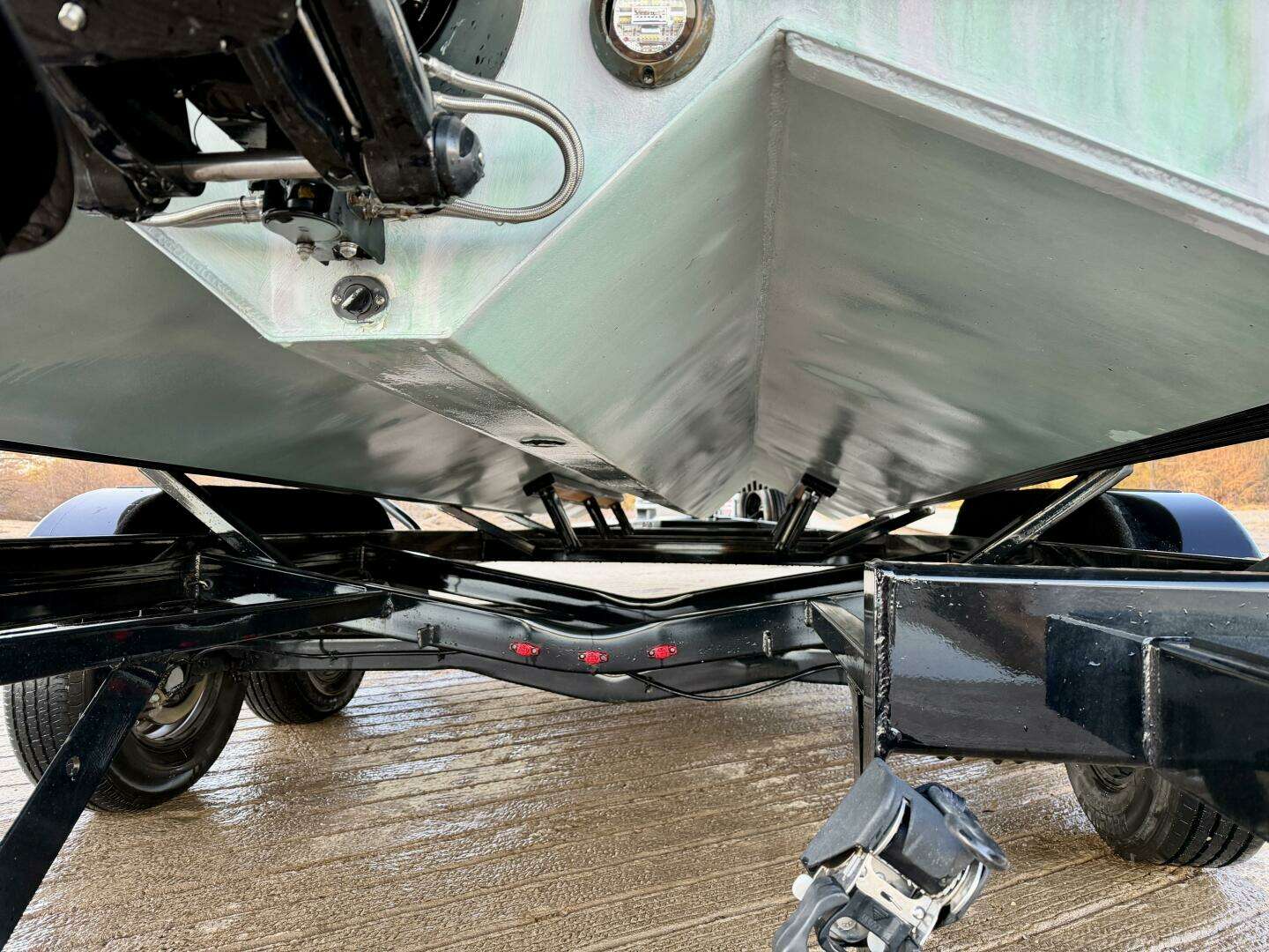 2022 BoatMate Tandem Axle Steel-Painted Trailer w/Aluminum Wheels, Dual Disc Brakes, Spare Tire, Guide Poles, Swing Tongue, Transom Tie-Downs, & Step-Up Ladder w/Handrails Included (2021(x2), 2022, & 2025(x2) Tires)!