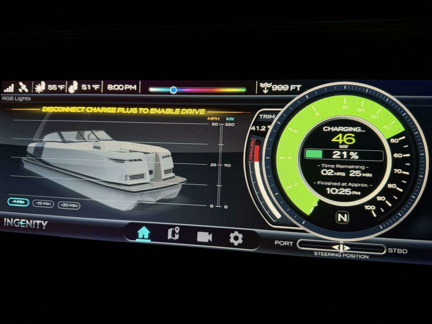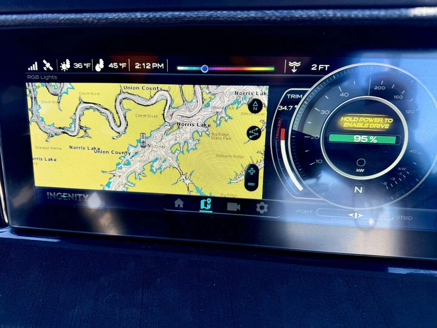 12'' Touchscreen Ingenity View User Interface w/Integrated Controls & Vessel Data (Including: Air/Water Temp., Speed/Power Consumption w/Range & Charging Status, GPS/Chartplotter, Drive Trim & Rudder Angle Indicators, Swim Platform Awareness/Rear View Camera, RGB Lighting Color Selector, & More),