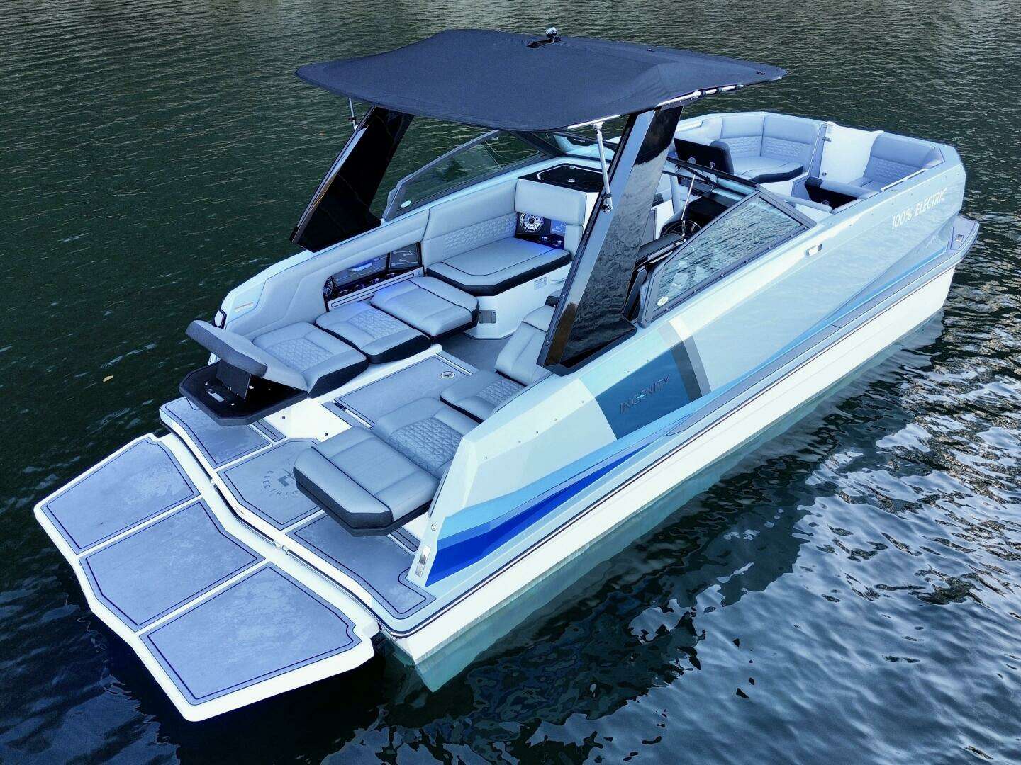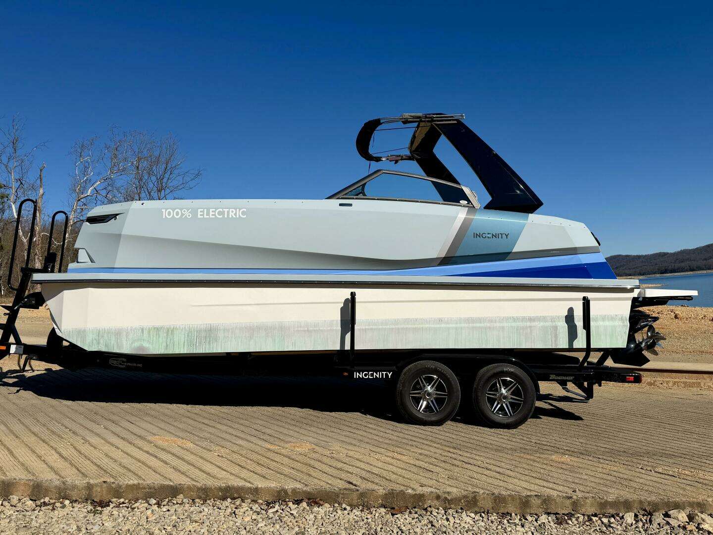 This One-Owner 2023 Correct Craft Ingenity 100% Electric Powered Aluminum Boat For Sale near Norris Lake Tennessee is equipped with a Cascadia Motion 580Nm Electric Motor producing around 195-225HP (Manufacturer Rates it at 295HP) that's paired with a 400V/126kWh Liquid-Cooled Li-Ion Battery Pack and a Bravo III Dual Prop Outdrive and features an aluminum hull, an onboard 11kW L2 Charger for charging the Motor Batteries, a Heat Pump Thermal Management System, plus an Onboard ProMariner Charger for the House 12V Battery with Battery Switch, a 300W/120V Inverter with 2 Outlets, a fixed Arch with Bimini Top that a Bow SunShade can be attached to for additional shade, other canvas includes a Cockpit, Bow & Mooring Covers (plus a Transport Cover for winter storage). The feature list continues at the Driver's Helm with an Electric Powered Telescoping Driver Seat with a Flip-Up Bolster and manual Slide & Swivel adjustments, a Gussi Italia Tilt Steering Wheel with Dometic Optimus Electronic Powered Steering & Electric Actuator to create incredibly smooth steering controls with a 12'' IngenityView Touchscreen equipped with an integrated GPS/Chartplotter, Depth, Air, & Water Temperature Displays, Speed/Power Consumption with Estimated Range, Charging Status, Drive Trim, Rudder Angle Indicators, an Awareness Camera/Rear View Camera, RGB Lighting Color Selector & More, plus a wireless phone holder/charger is provided at the helm. Other highlights throughout the cockpit include an Isotherm Stainless Steel 12Volt Refrigerator, plus a Removable 36Qt Igloo Cooler with Dedicated Under-Seat Storage, an upgraded JL Audio Stereo with 4 Stereo Remotes and 2 Subwoofers, 12 Volt charging for up to 14 devices, Convertible Bow Seating, Aft back to back seats that convert to sun loungers, RGB Color Changing Interior, Backlit speakers, and Under Water Lights, LED Docking Lights, in-floor storage compartment, Fire Supression System, SeaDek Flooring Throughout, (4)Phender Pro Fender Clips/Mounts, (6)Pull-Up Cleats, a 2022 BoatMate Tandem axle trailer with aluminum wheels, dual disc brakes, a swing tongue, drive on guides, and a step up ladder is included! Transferable warranty through 2027 and much more!