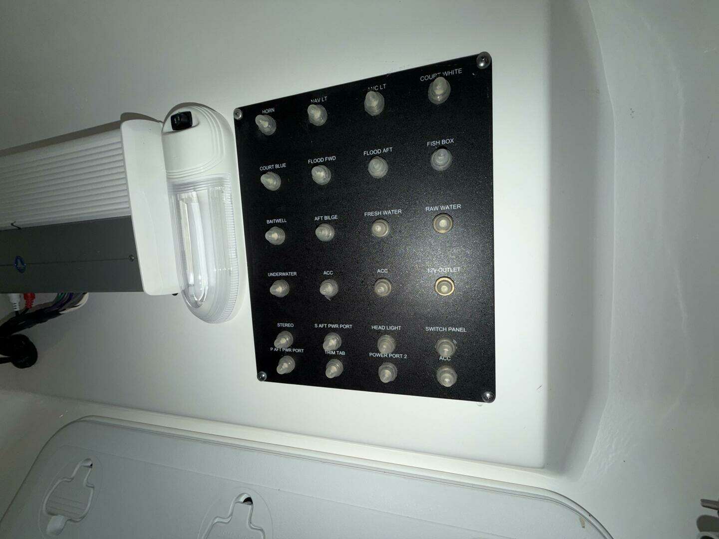 - Electric trim tabs, fresh water system, raw water wash down, and bow cushion package.