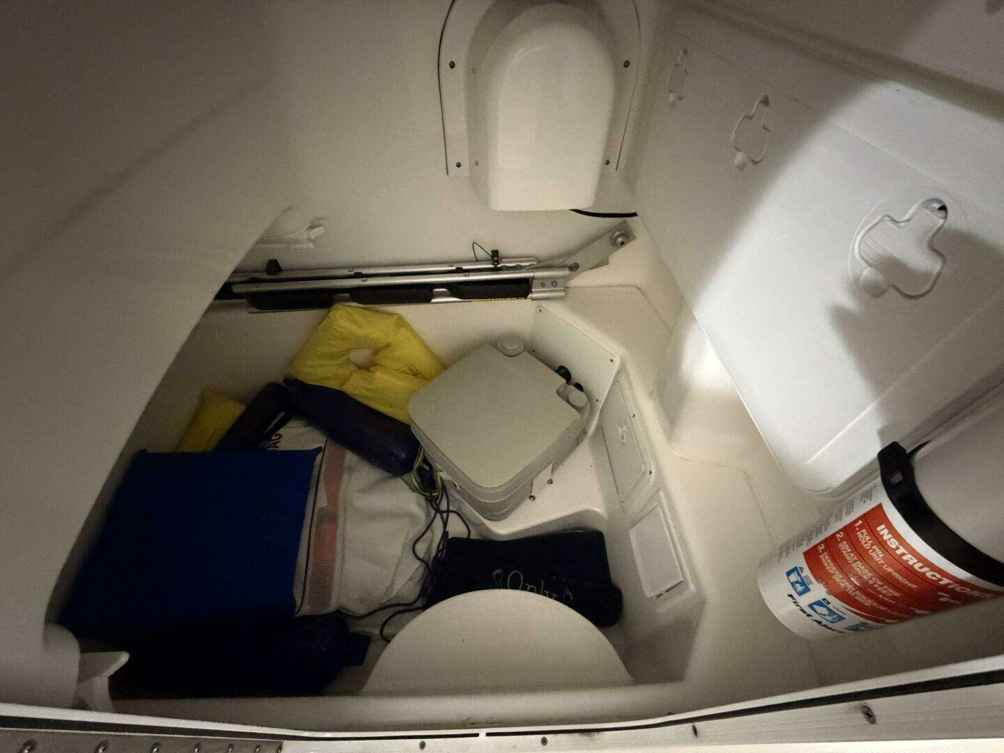 - Enclosed head with pump-out Porta Potty — a rare feature in this size class.
