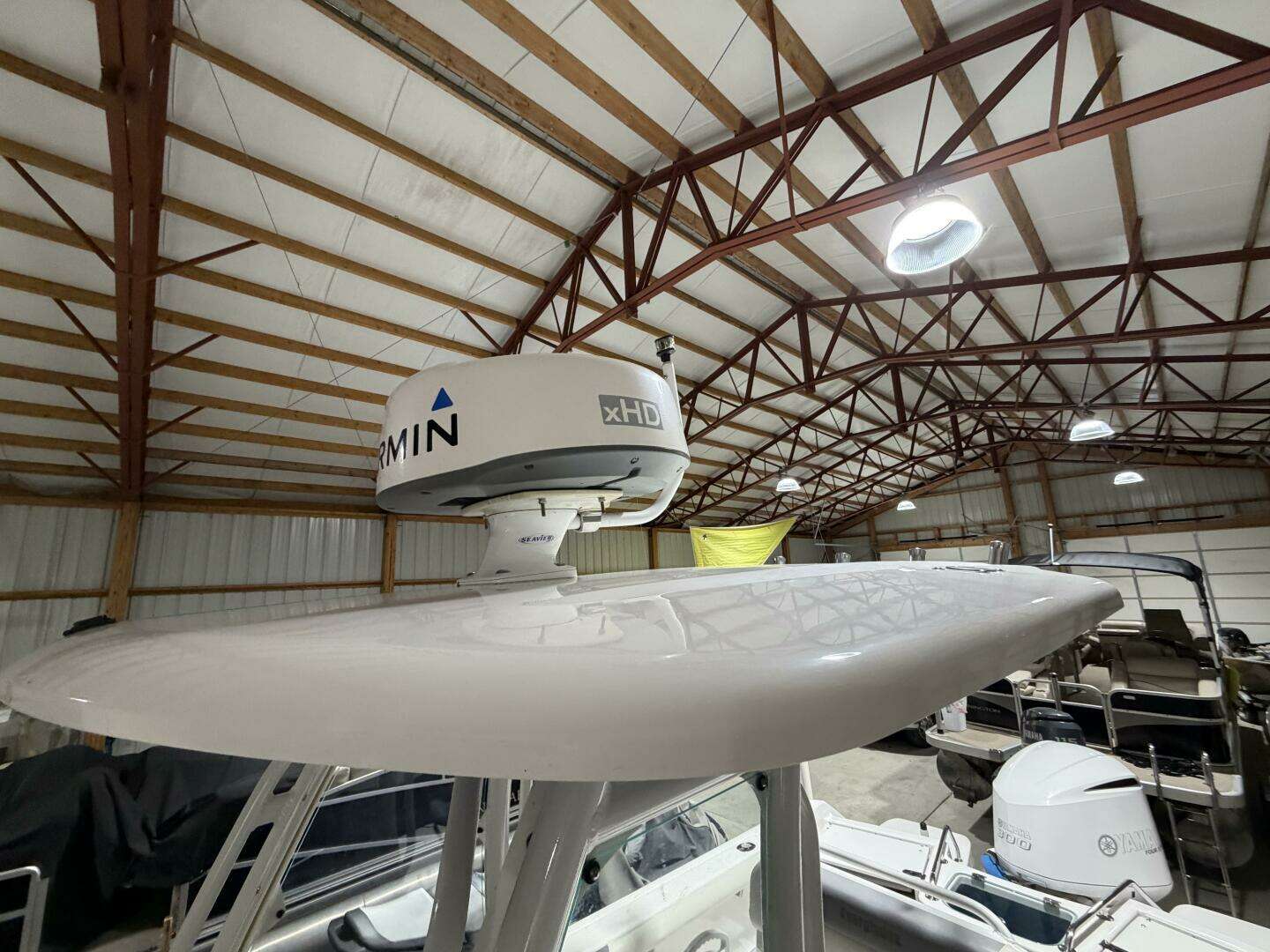State-of-the-art Garmin navigation suite with full NMEA integration connects chartplotter, radar, sonar (through-hull and side-scan), and Yamaha engine data for seamless situational awareness on every voyage.