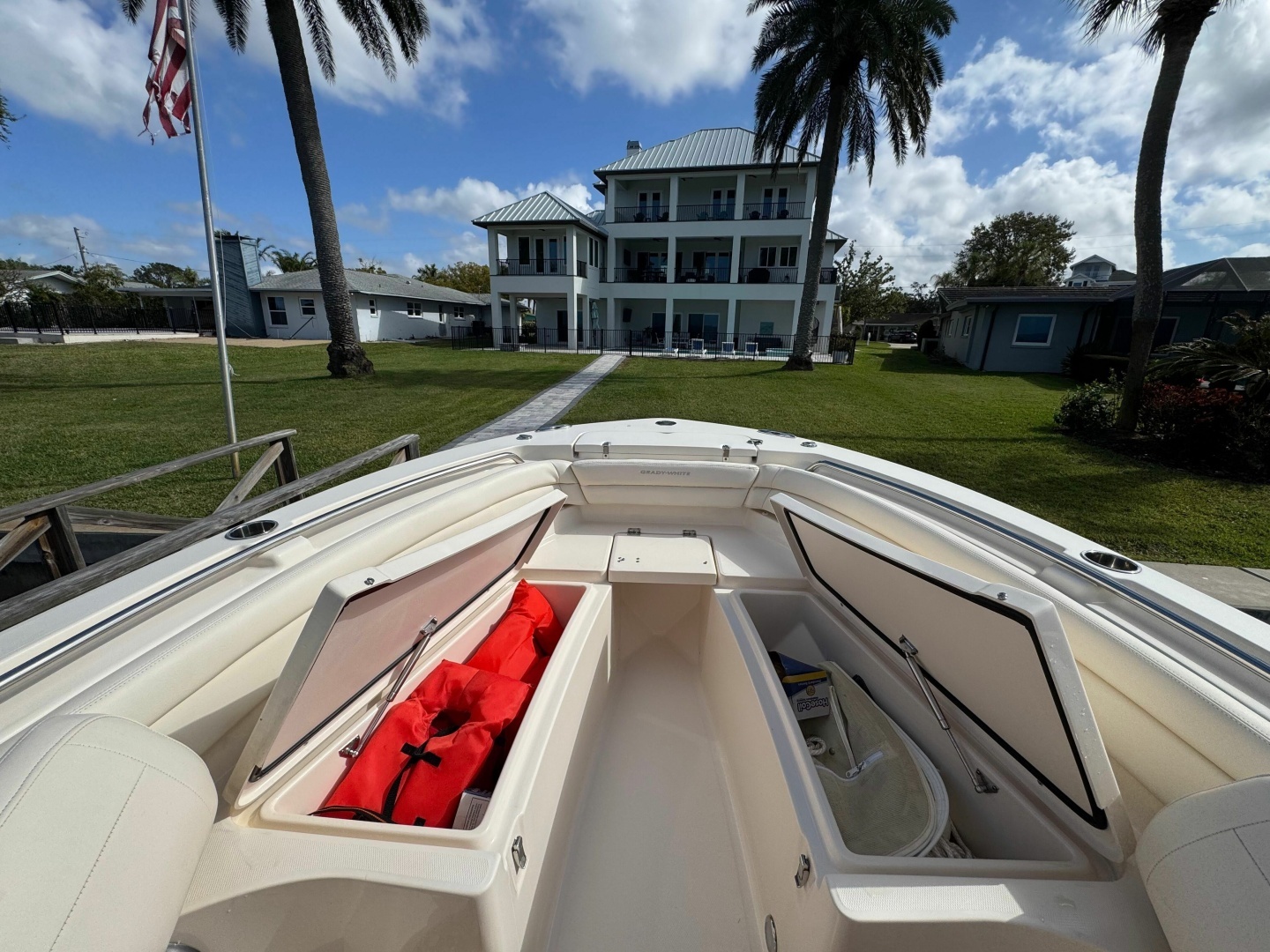 - Grady-White’s legendary SeaV² variable-deadrise hull for a soft, stable ride