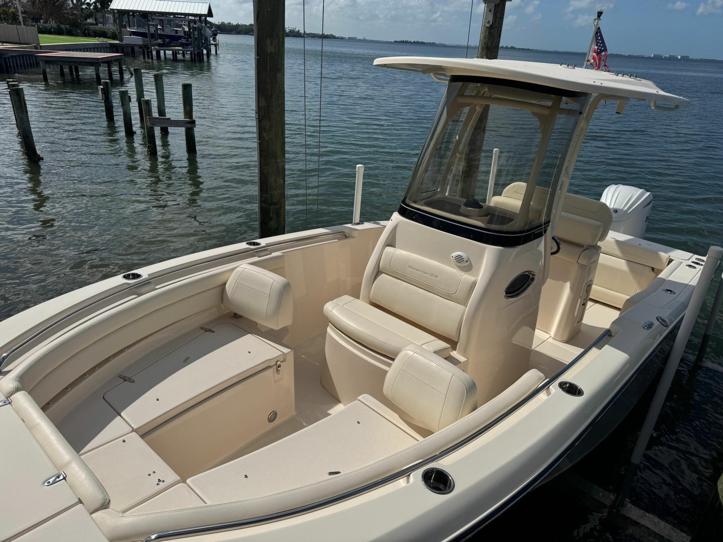 Introducing the remarkable 2023 Grady-White Fisherman 236, a stunning center console boat that combines performance and elegance. With an overall length of 23.58 feet, this vessel boasts a robust fiberglass hull designed in a deep vee shape, ensuring a smooth and stable ride even in challenging waters. Powered by a formidable 300 hp Yamaha outboard engine with only 20 hours of use, this boat promises exhilarating adventures on the water. The thoughtful design includes essential features that enhance your boating experience, ensuring you are well-equipped for your journeys. The Fisherman 236 is perfect for both leisurely outings and fishing expeditions, offering ample space for relaxation and activity. Its sleek lines and modern aesthetic make it a standout choice for boating enthusiasts. Experience the thrill of the open water with this exceptional vessel, where quality craftsmanship meets innovative design. Ready for showings in Dunedin, FL.