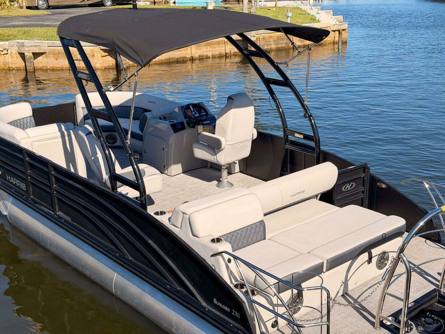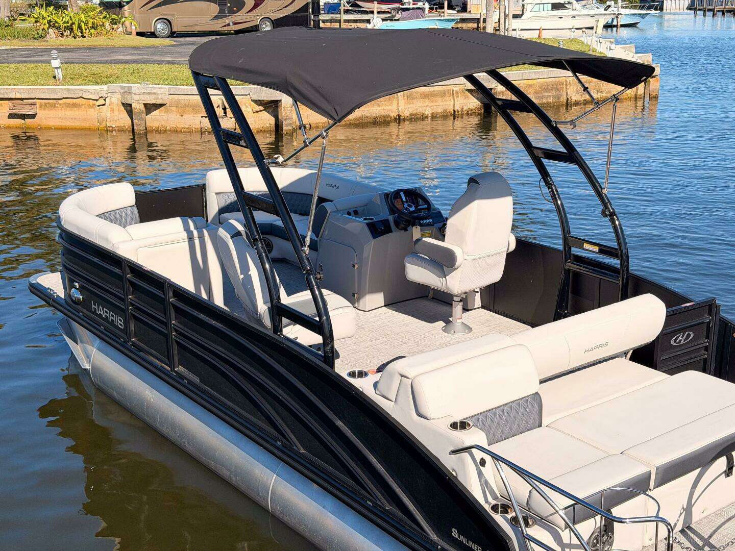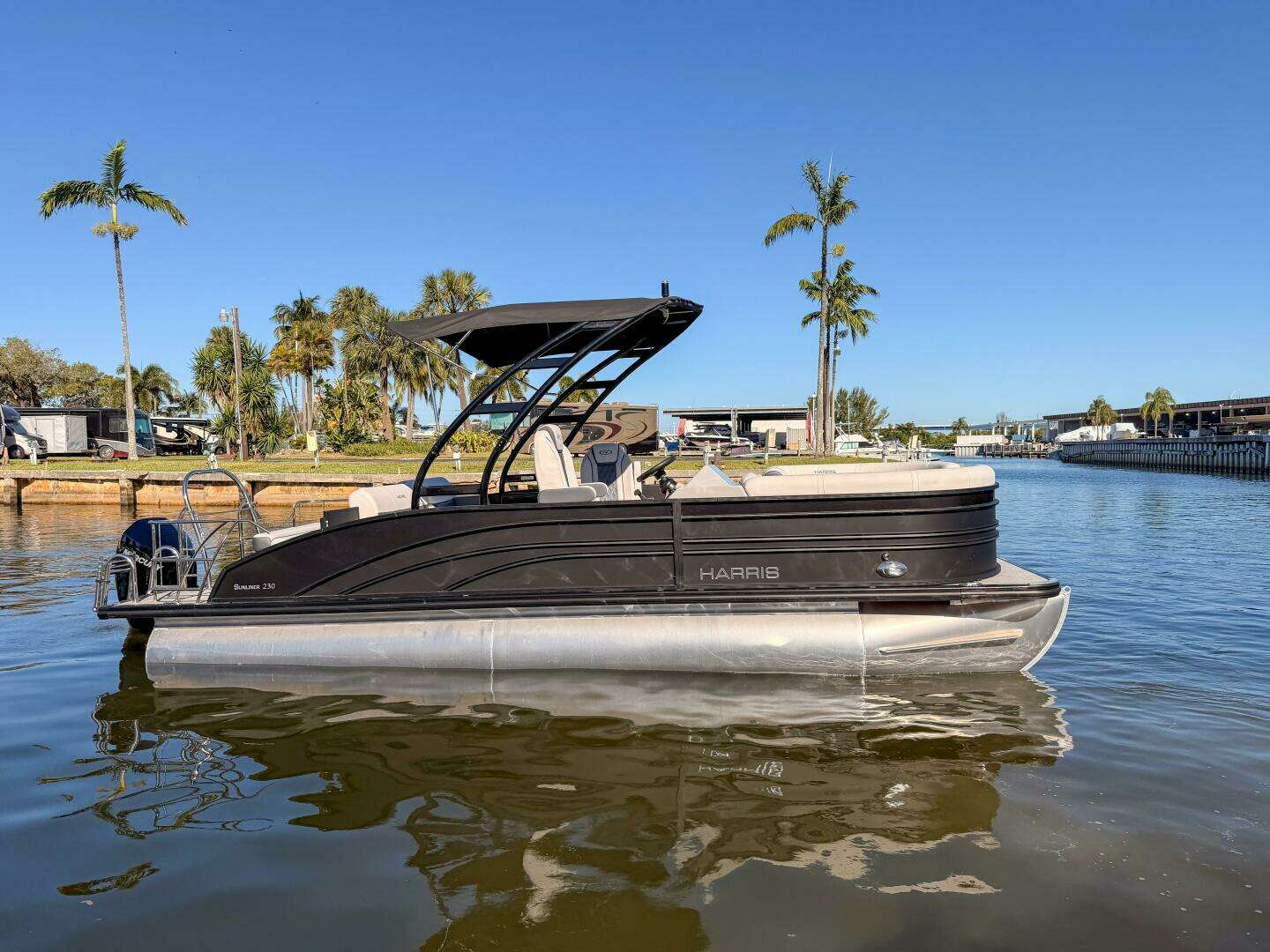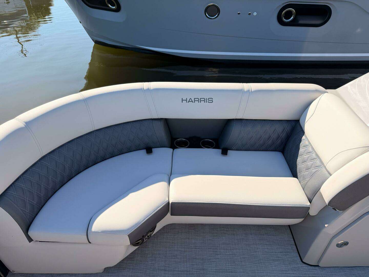 The 2023 Harris 230 Sunliner is a versatile and stylish pontoon boat designed for families and groups seeking a blend of comfort, performance, and functionality on the water. With an overall length of 23'5" and a beam of 8'6", it offers ample space and stability for up to 14 passengers, depending on the tube configuration. Power is from 200 hp, ensuring efficient cruising and the ability to tow water sports equipment. Standard features include luxurious pillow-top vinyl upholstery, flexible seating arrangements, generous onboard storage, and a sleek new fence design. The Sunliner is purpose-built for versatility—cruising, relaxing, partying, fishing, skiing, or simply enjoying a day on the lake with family and friends. With its combination of style, comfort, and performance, the 2023 Harris 230 Sunliner is an excellent choice for those seeking an enjoyable boating experience.