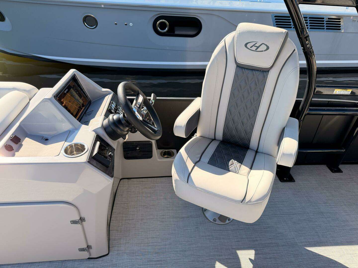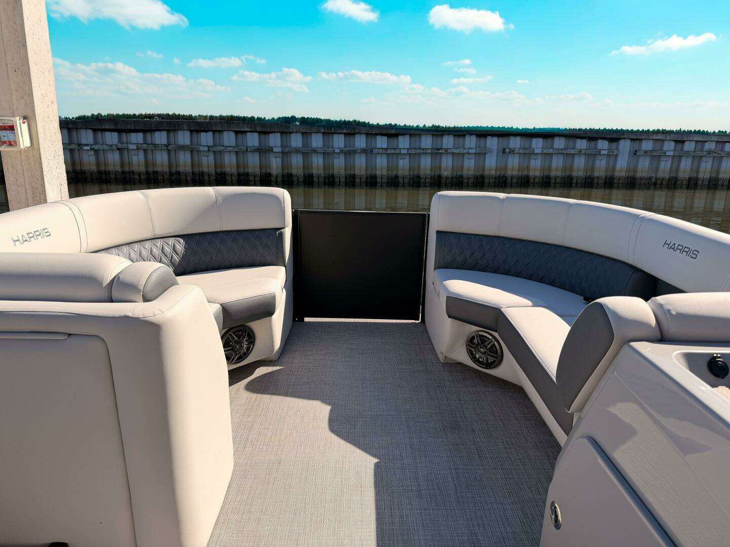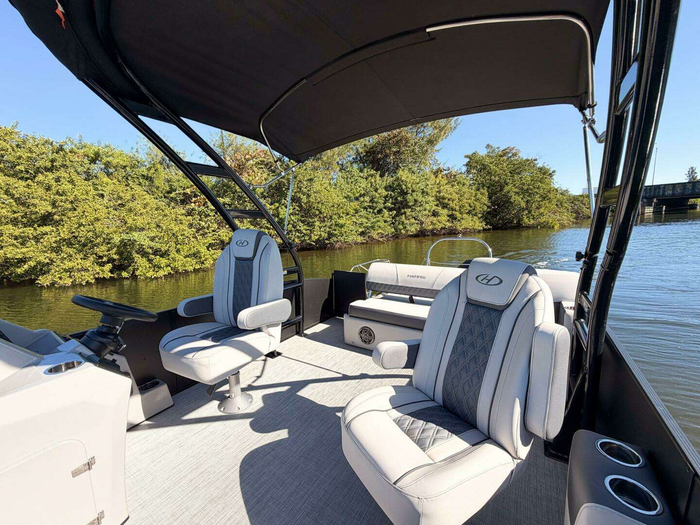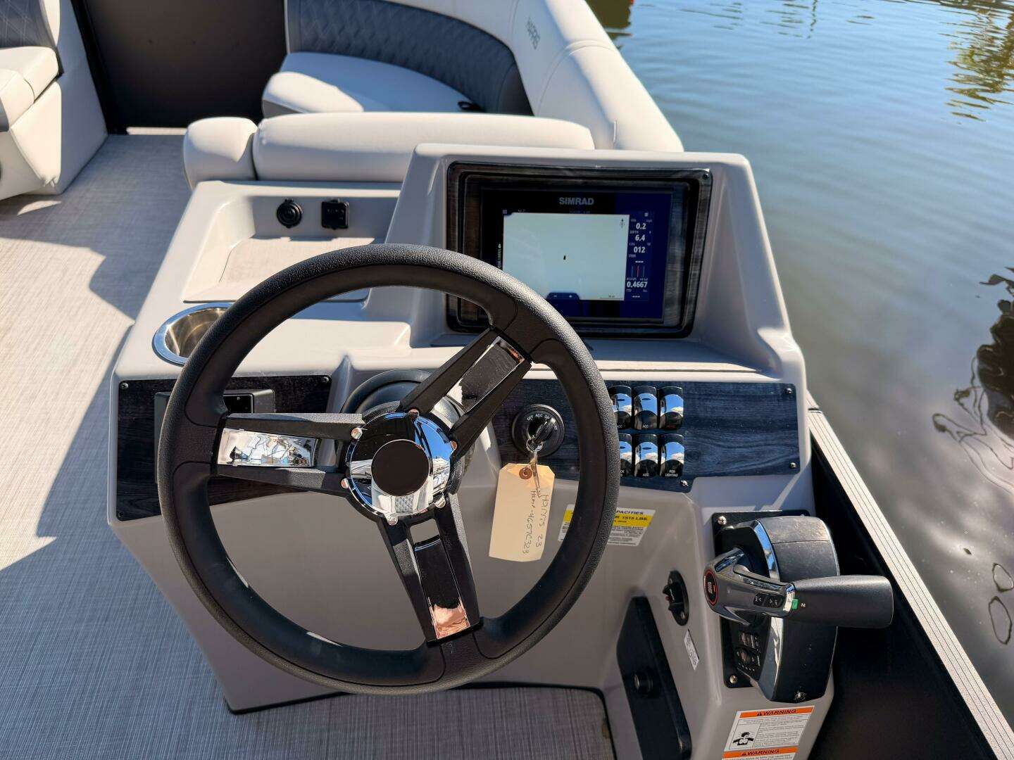 The 2023 Harris 230 Sunliner is a versatile and stylish pontoon boat designed for families and groups seeking a blend of comfort, performance, and functionality on the water. With an overall length of 23'5" and a beam of 8'6", it offers ample space and stability for up to 14 passengers, depending on the tube configuration. Power is from 200 hp, ensuring efficient cruising and the ability to tow water sports equipment. Standard features include luxurious pillow-top vinyl upholstery, flexible seating arrangements, generous onboard storage, and a sleek new fence design. The Sunliner is purpose-built for versatility—cruising, relaxing, partying, fishing, skiing, or simply enjoying a day on the lake with family and friends. With its combination of style, comfort, and performance, the 2023 Harris 230 Sunliner is an excellent choice for those seeking an enjoyable boating experience.