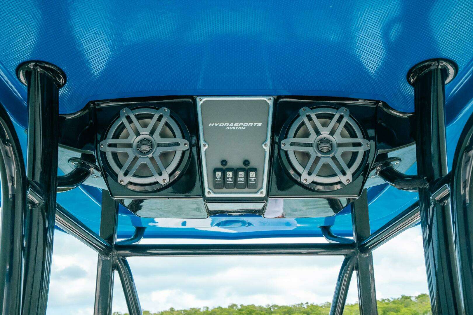 - Music is a must! The Fusion MS-RA70 Marine stereo has an optically bonded LCD display, is Bluetooth compatible, and includes 2 speaks in the bow, 2 speakers midship, and 2 subwoofers under the hard-top.