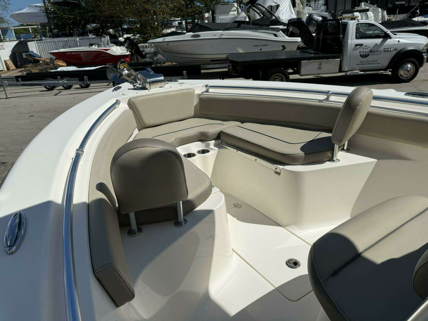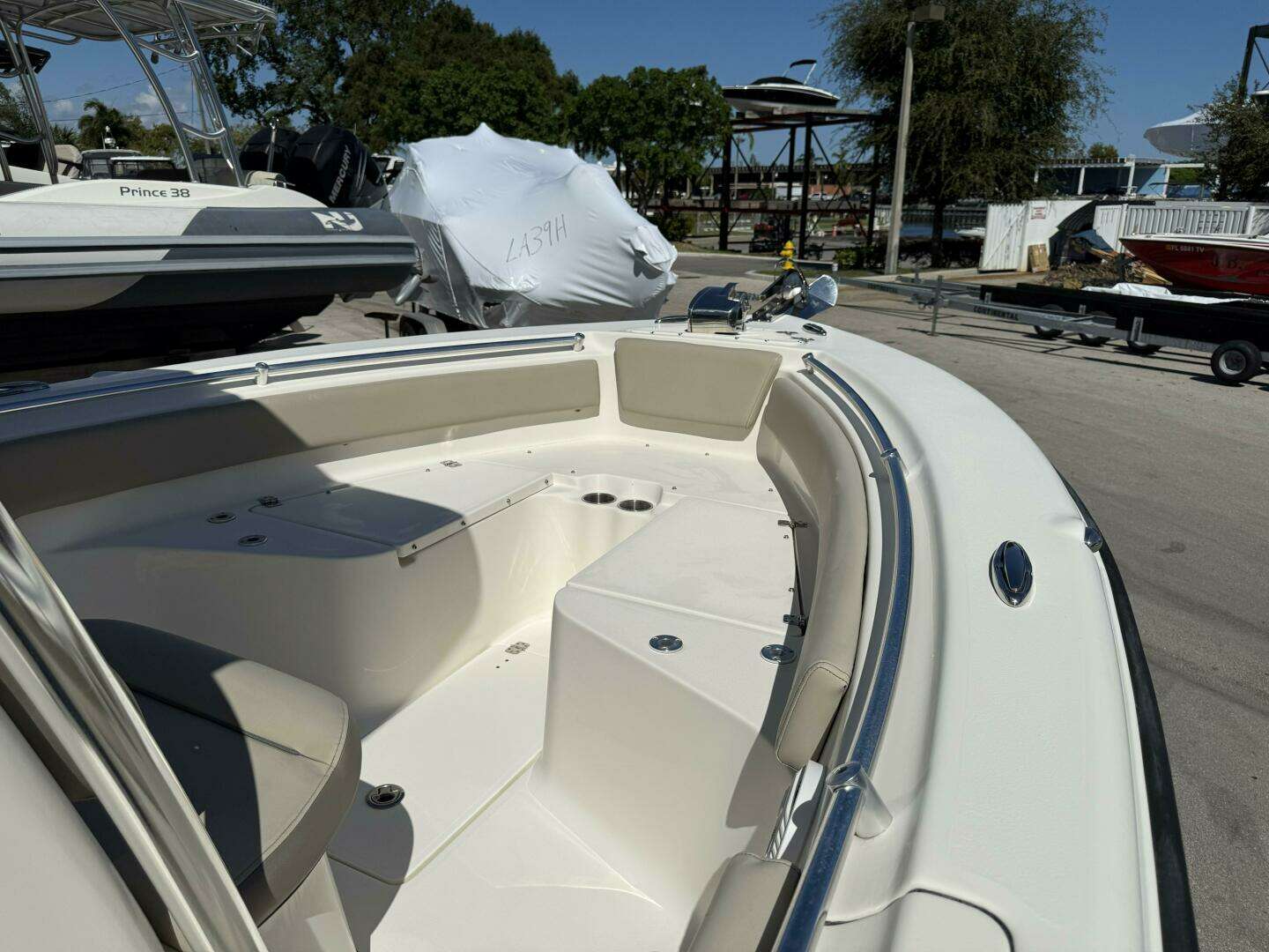 The FS (Family Sportsman) layout is designed for versatility — equally at home chasing fish offshore or cruising with the family on the weekend. Premium upholstery, wraparound bow seating, and Key West’s unsinkable foam-filled hull make it one of the most popular 23-foot center consoles on the market.