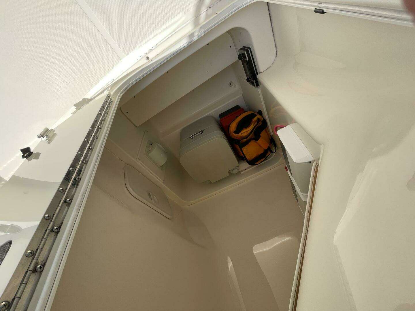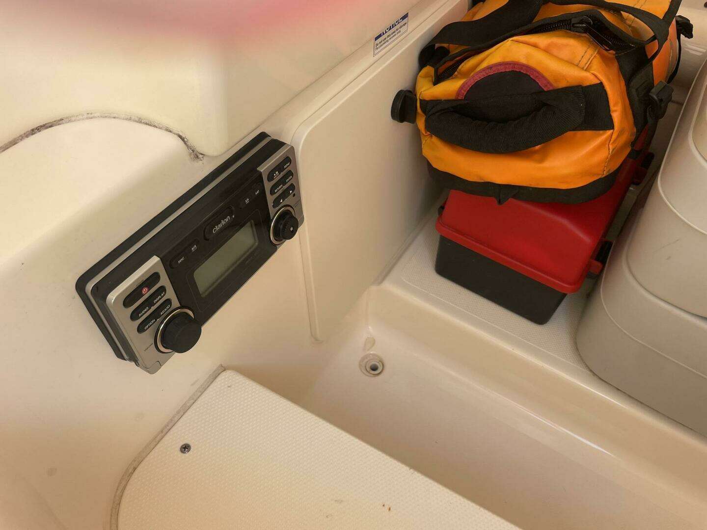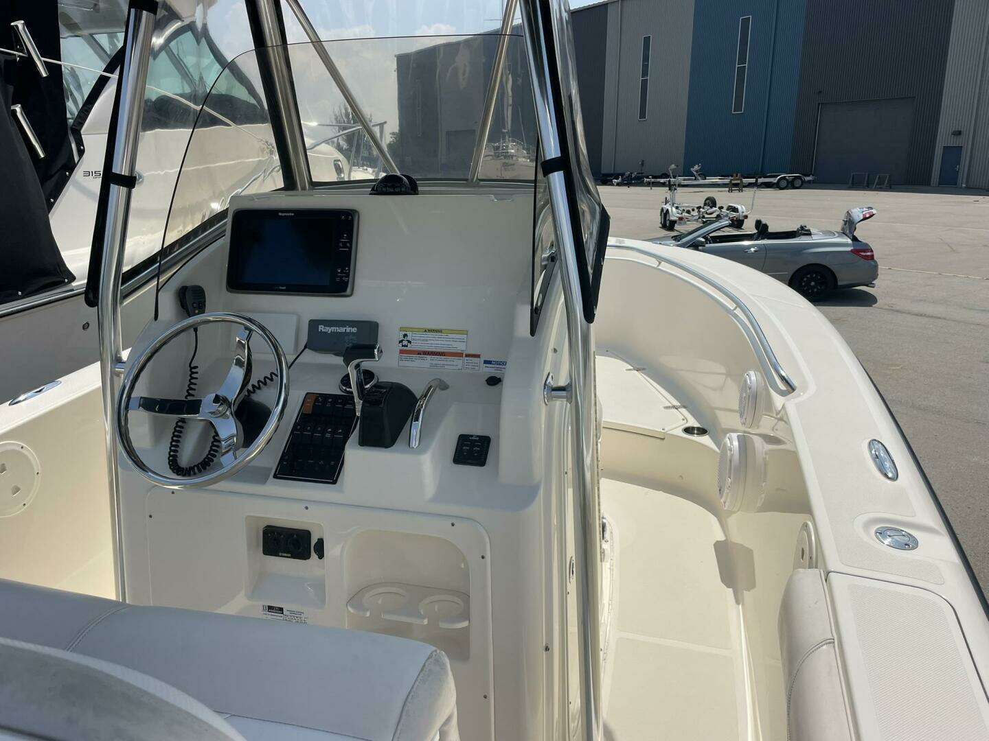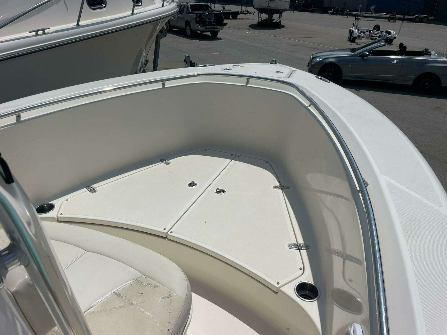 "No hassles” doesn’t mean “no frills” when it comes to the versatile C 230. Despite her trailerable size, this boat packs a lot of amenities for fishing, cruising and watersports enthusiasts. The integral transom bench seat simultaneously provides comfortable seating while the seat base houses a 22-gallon storage compartment. To port is a 23-gallon recirculating livewell with a rigging station located at the transom to starboard. A removable cooler can tuck easily under the leaning post but it’s not really necessary considering the expansive insulated cooler in the molded-in forward console seat base. There’s a portable head with pumpout in the console and even a washdown with hose and sprayer in the cockpit for quick clean up or to cool off on a scorching day.