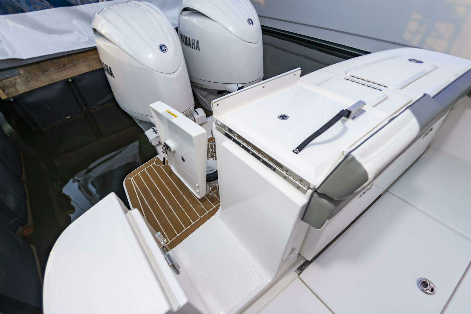 - Twin White Yamaha F150 4-Stroke Engines with DEC, Integrated Electro-Hydraulic Steering with Tilt Helm, and Electronic Key Switch with Wireless Key Fob
