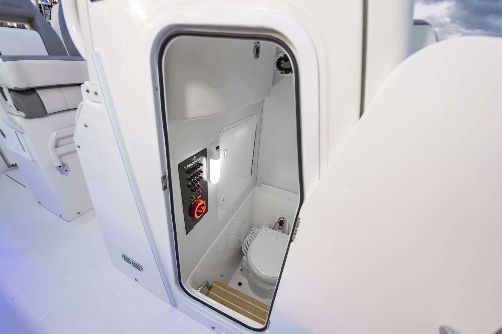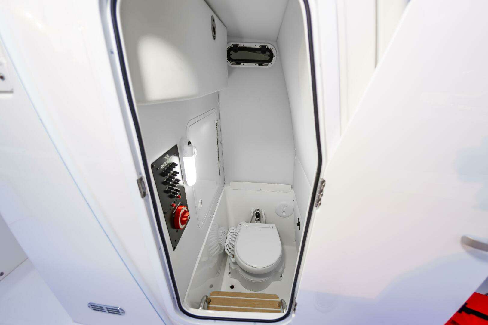 - Stand-Up Head Compartment with Portable Marine Toilet