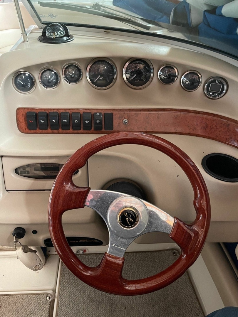 This 1997 Sea Ray 230 Bow Rider makes a full day on the water a non-stop pleasure! The huge sun pad and roomy bow area provide plenty of space for basking and lounging. Powered by a 5.7L EFI MerCruiser Alpha I stern drive that promises speed and performance to make any helmsman's heart race. She has always been freshwater kept and professionally maintained, trailer is not included.