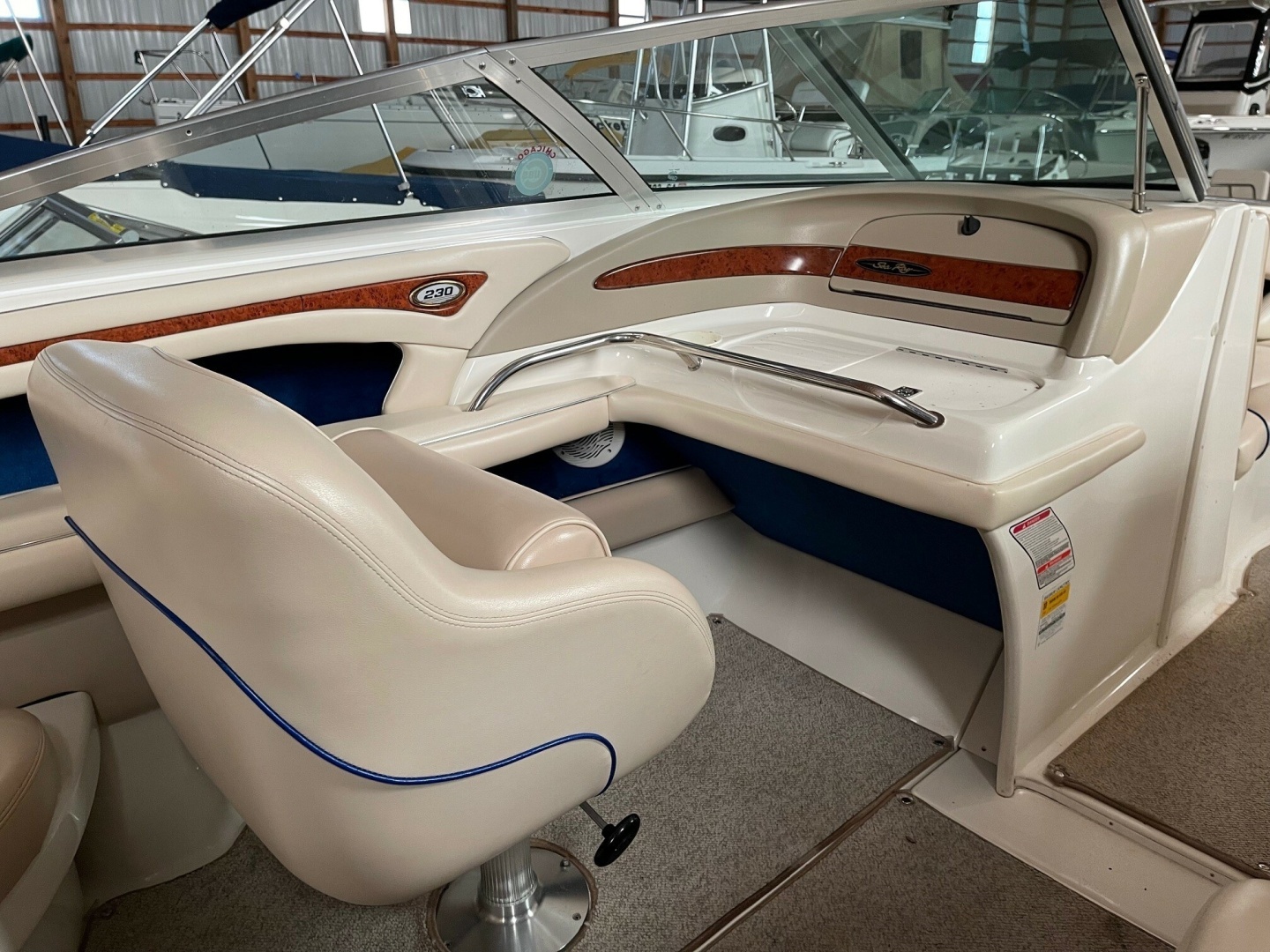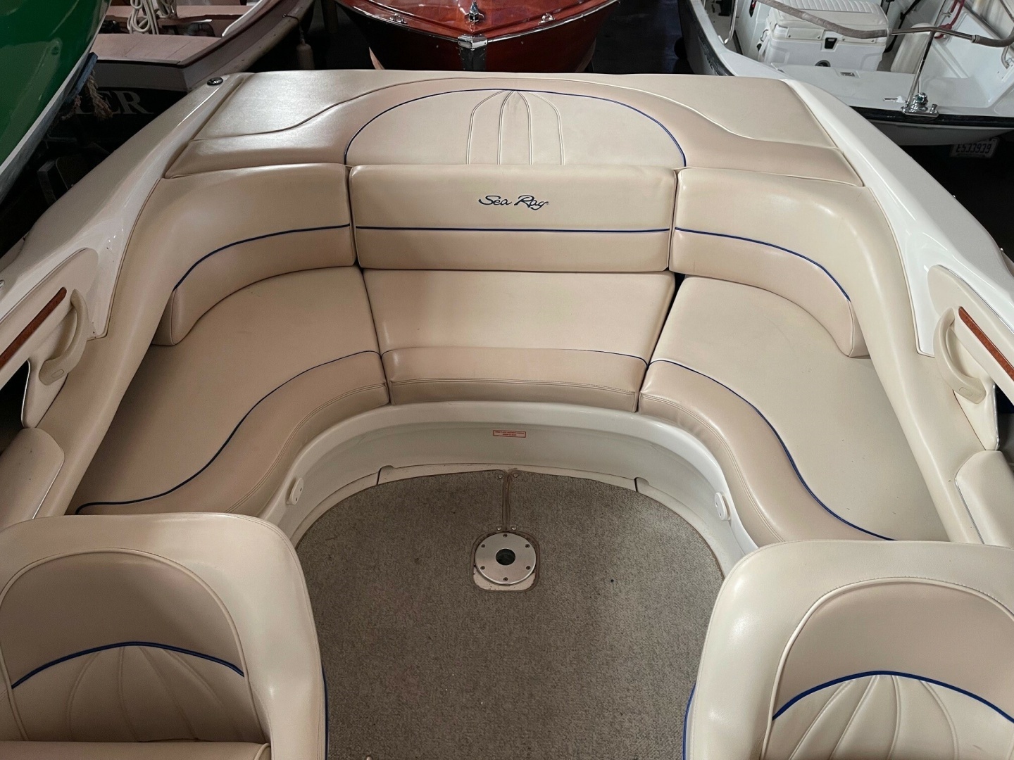 This 1997 Sea Ray 230 Bow Rider makes a full day on the water a non-stop pleasure! The huge sun pad and roomy bow area provide plenty of space for basking and lounging. Powered by a 5.7L EFI MerCruiser Alpha I stern drive that promises speed and performance to make any helmsman's heart race.