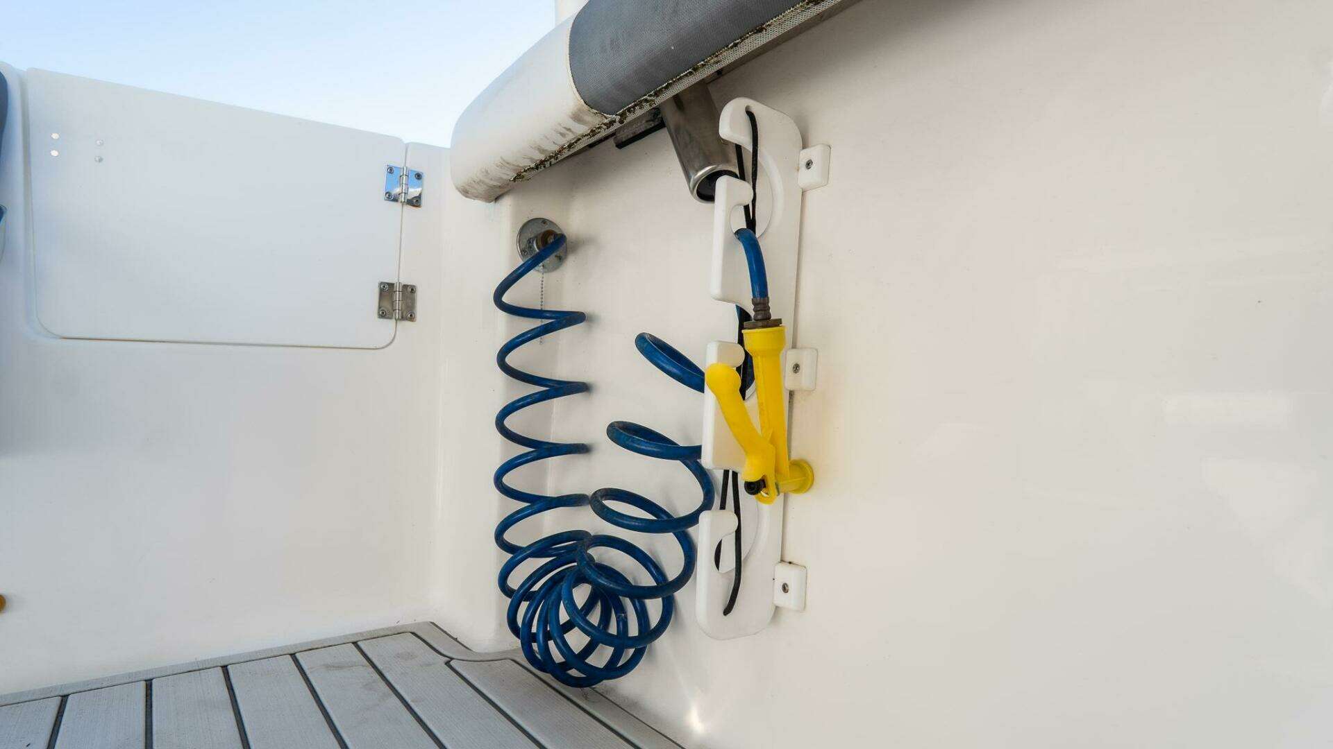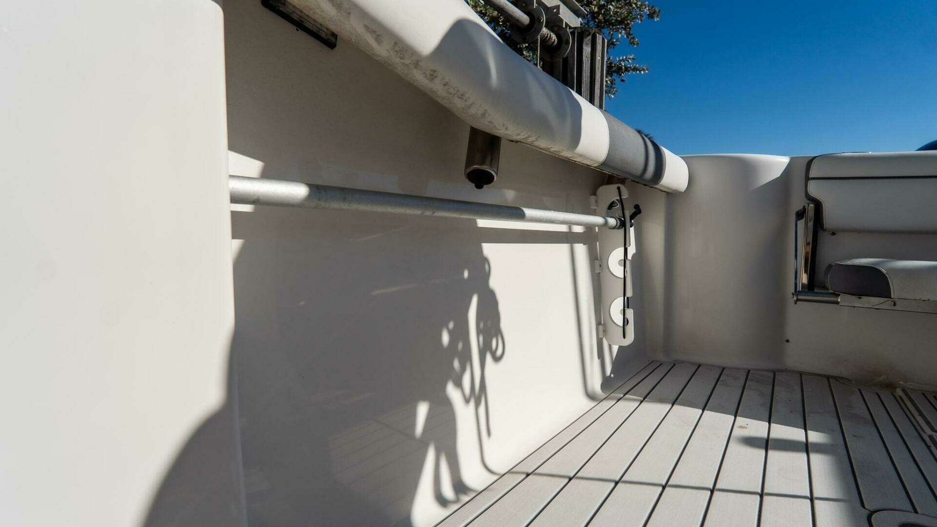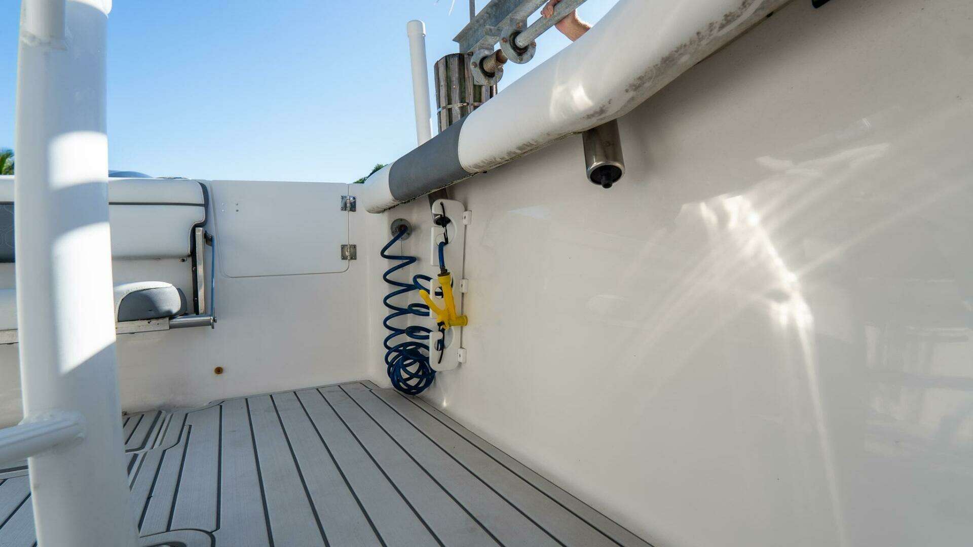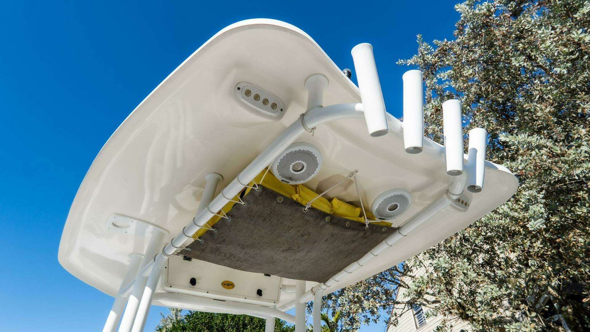 This boat is equipped with the features serious anglers and weekend cruisers appreciate, including a Garmin 10" GPS, ICOM VHF, SeaDek flooring package, and a Polk sound system. A custom bow table with filler cushion adds versatility for lounging, entertaining, or converting the bow into a casting platform. Trim tabs provide added control in varying sea conditions, enhancing performance and comfort.